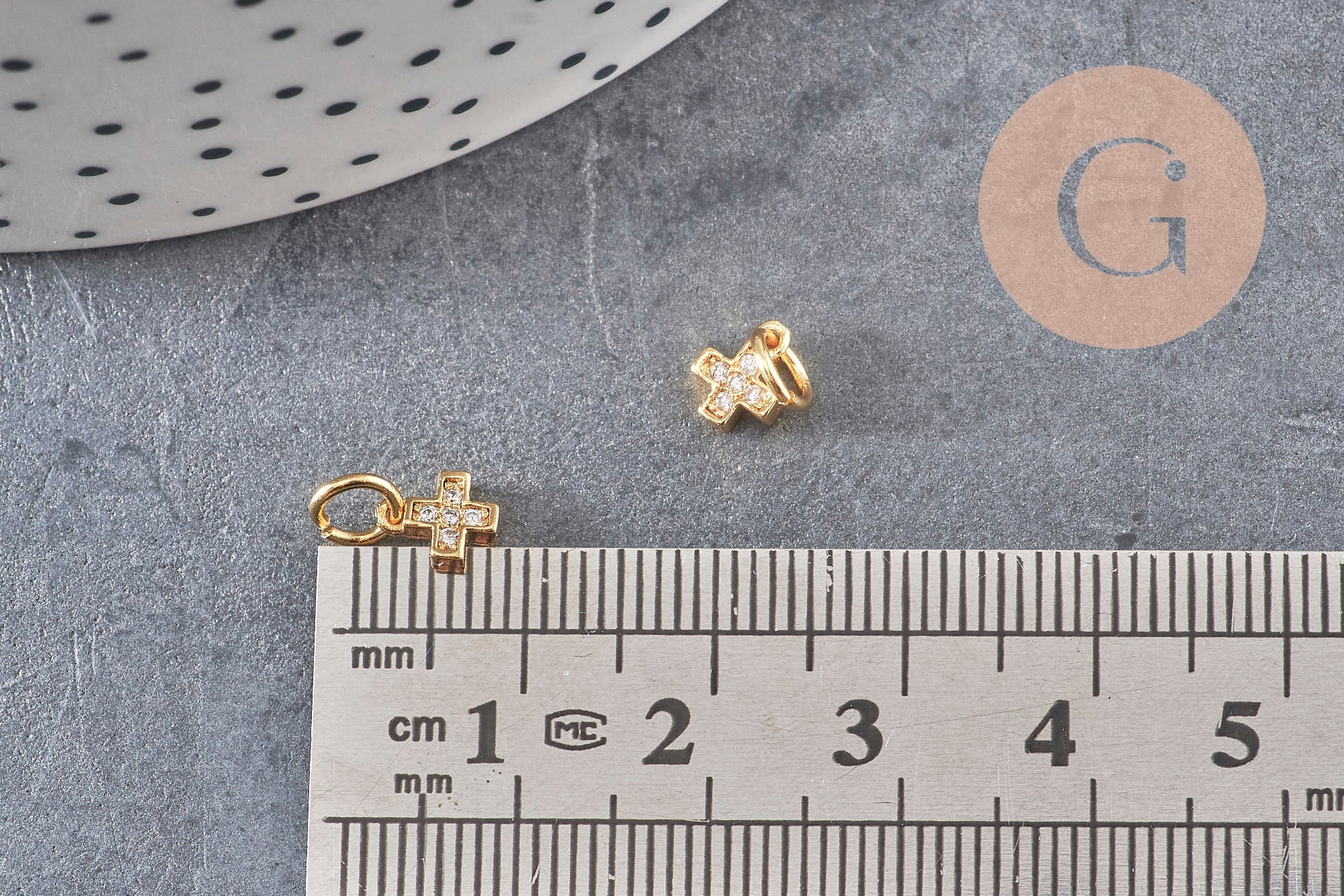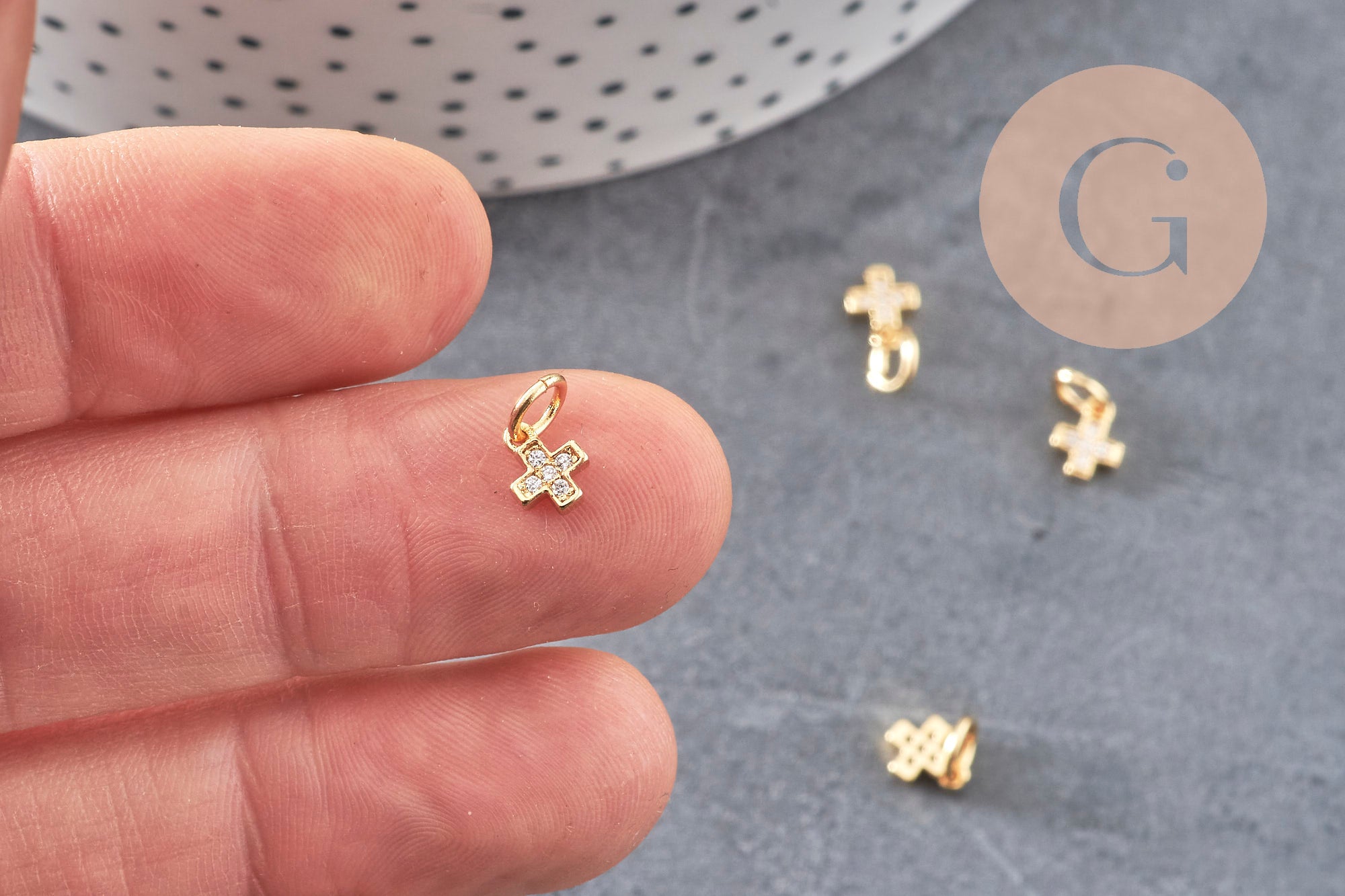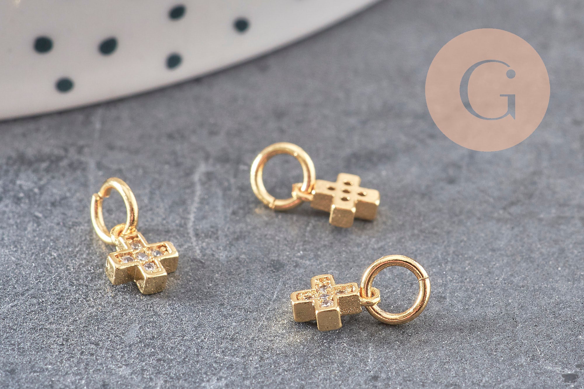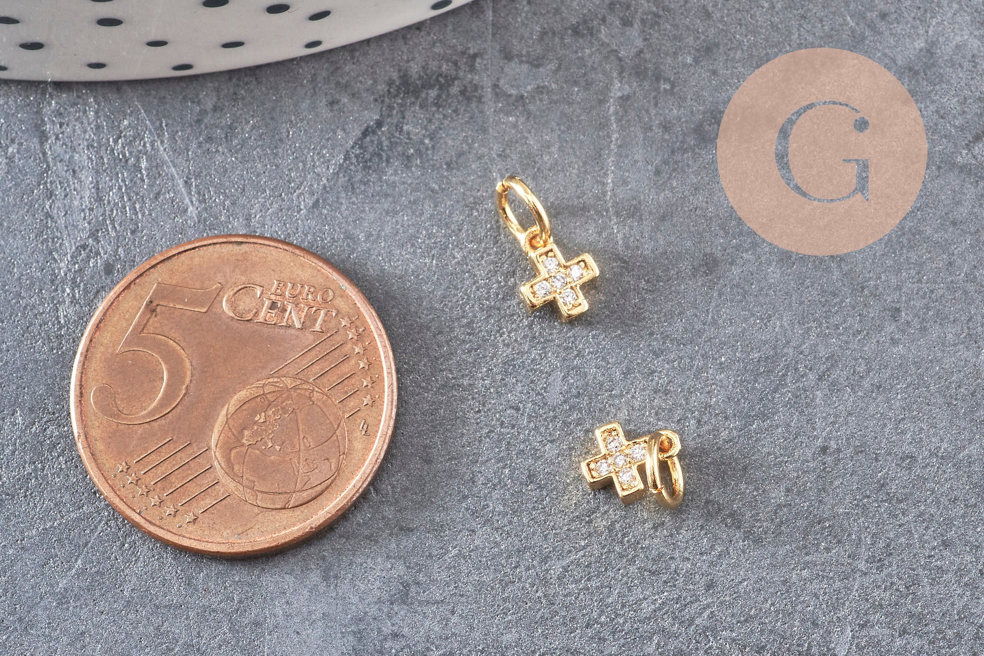 Para realizar magníficos collares, pendientes y pulseras, adopte estas pequeñas cruces religiosas de latón dorado, decoradas con pequeñas circonitas blancas brillantes.