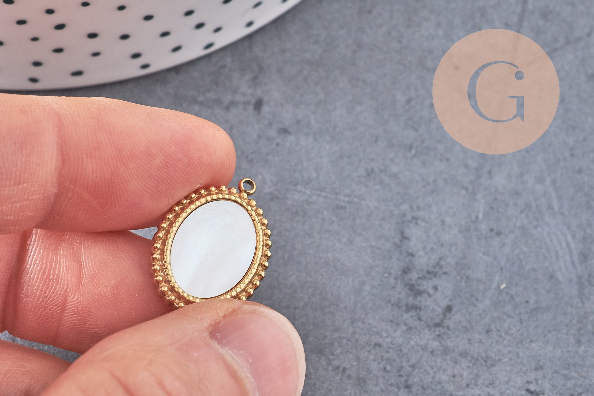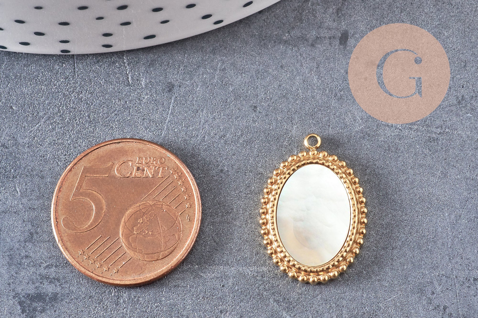 Dale un toque de suavidad y elegancia a tus creaciones con este colgante de medalla ovalada de nácar natural , montado sobre una base de acero inoxidable 304 bañado en oro iónico (IP) , con auténtico baño de oro de 14 quilates . Su sutil brillo perlado y su forma atemporal lo convierten en un accesorio imprescindible para joyería fina, luminosa y atemporal.