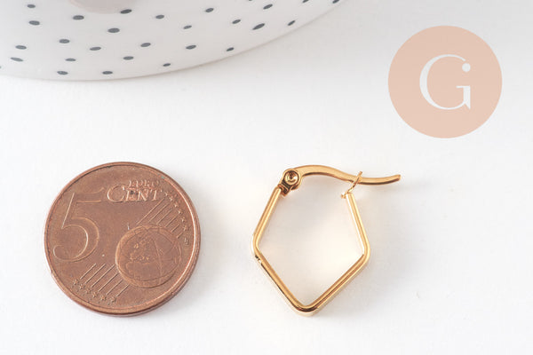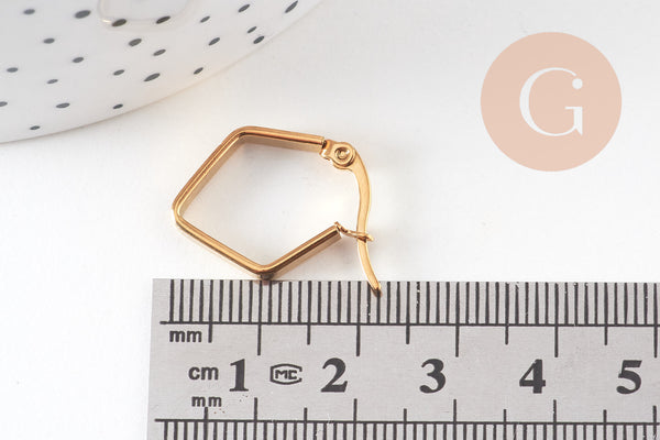 Aros geométricos de acero chapado en oro, con forma de diamante, sin níquel, de 16 mm (par) (G2325)