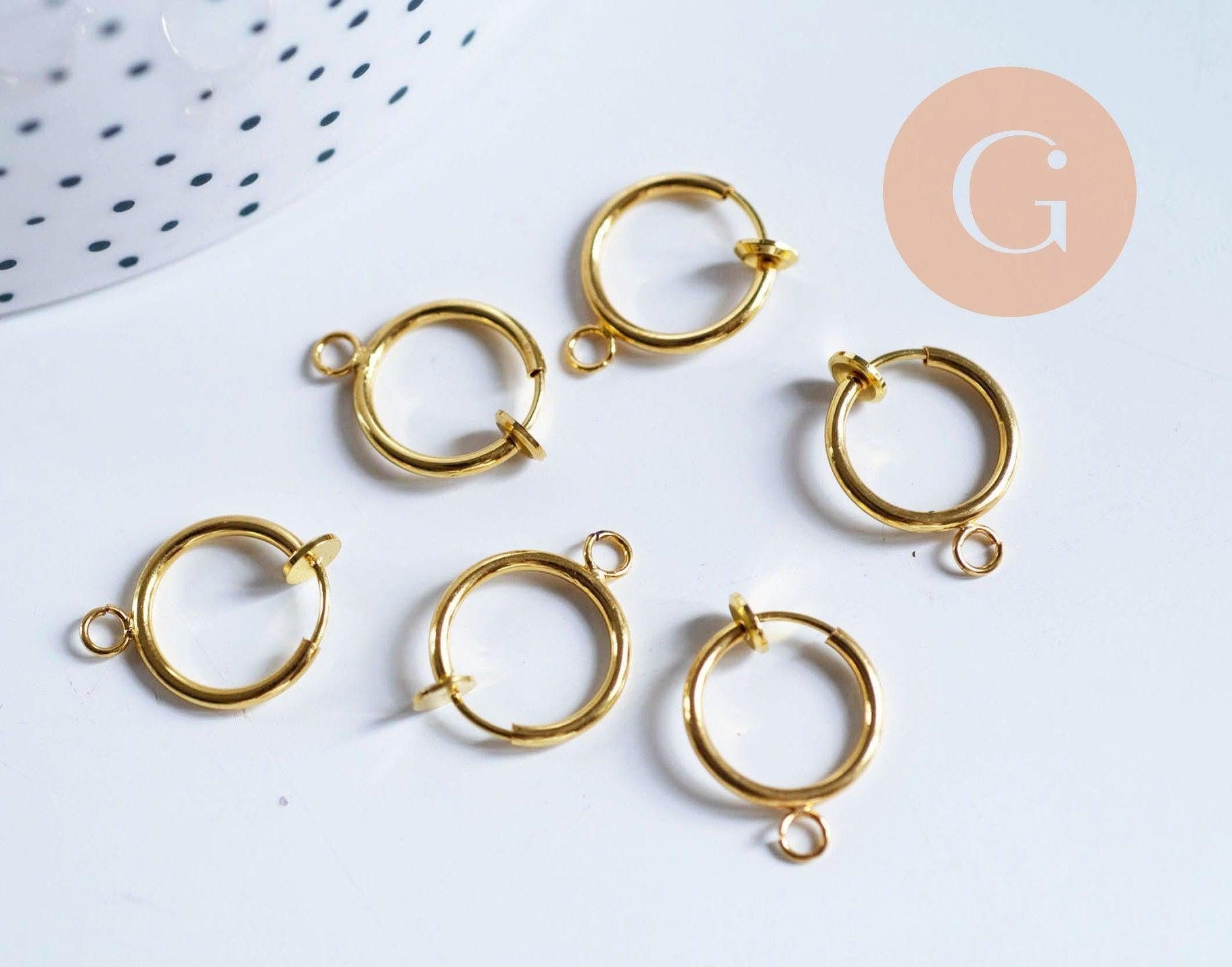 Un set de 2 anillos dorados de acero inoxidable para crear tus propios pendientes, para orejas no perforadas.