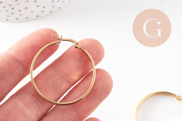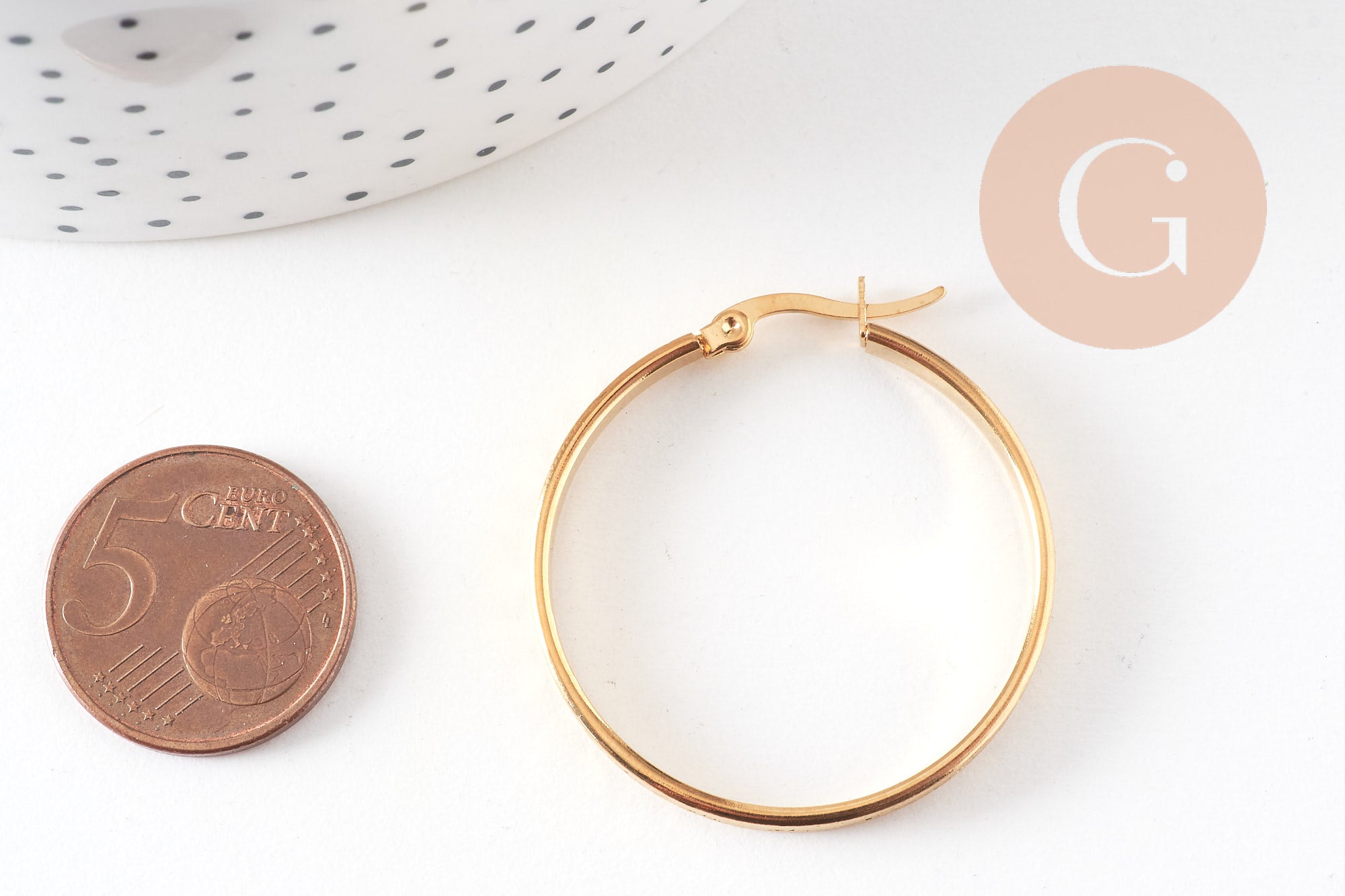 Créoles gravées acier doré, oreille percée,sans nickel, boucles acier, 35mm, la paire (G0761)