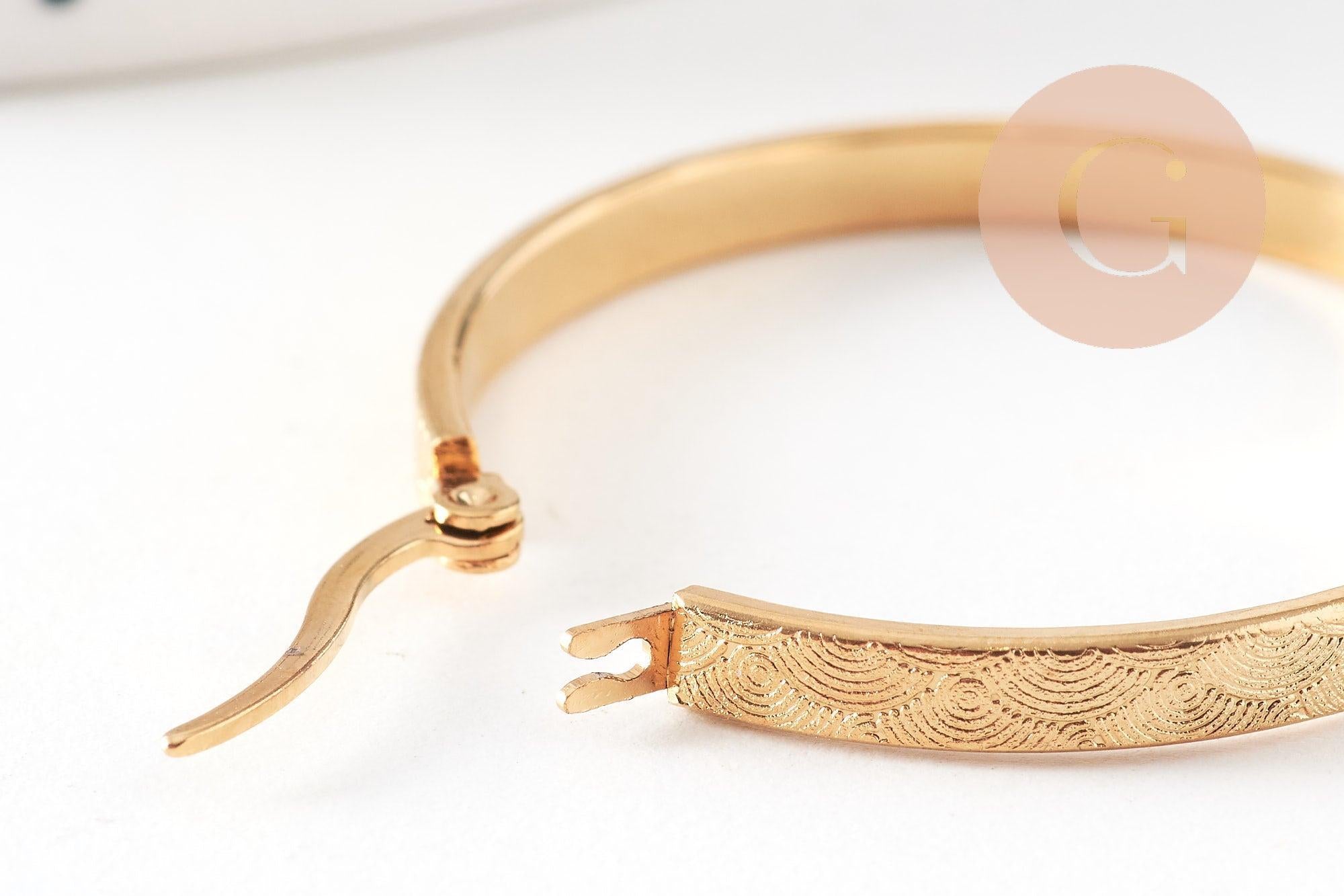 Pendientes de aro de acero chapado en oro con grabado, para oreja perforada, sin níquel, con aros de acero, 35 mm, par (G0761)