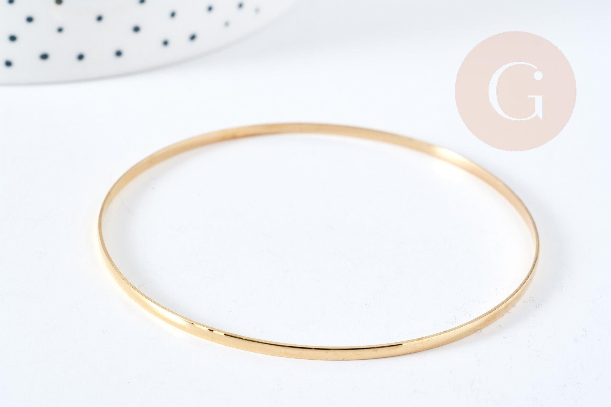 Esta pulsera lisa y fina de 2,5 mm de latón chapado en oro de 14 quilates es una base de pulsera ideal para crear bisutería elegante y moderna. La superficie lisa y brillante de la pulsera facilita su personalización con dijes, cuentas u otros elementos decorativos.
