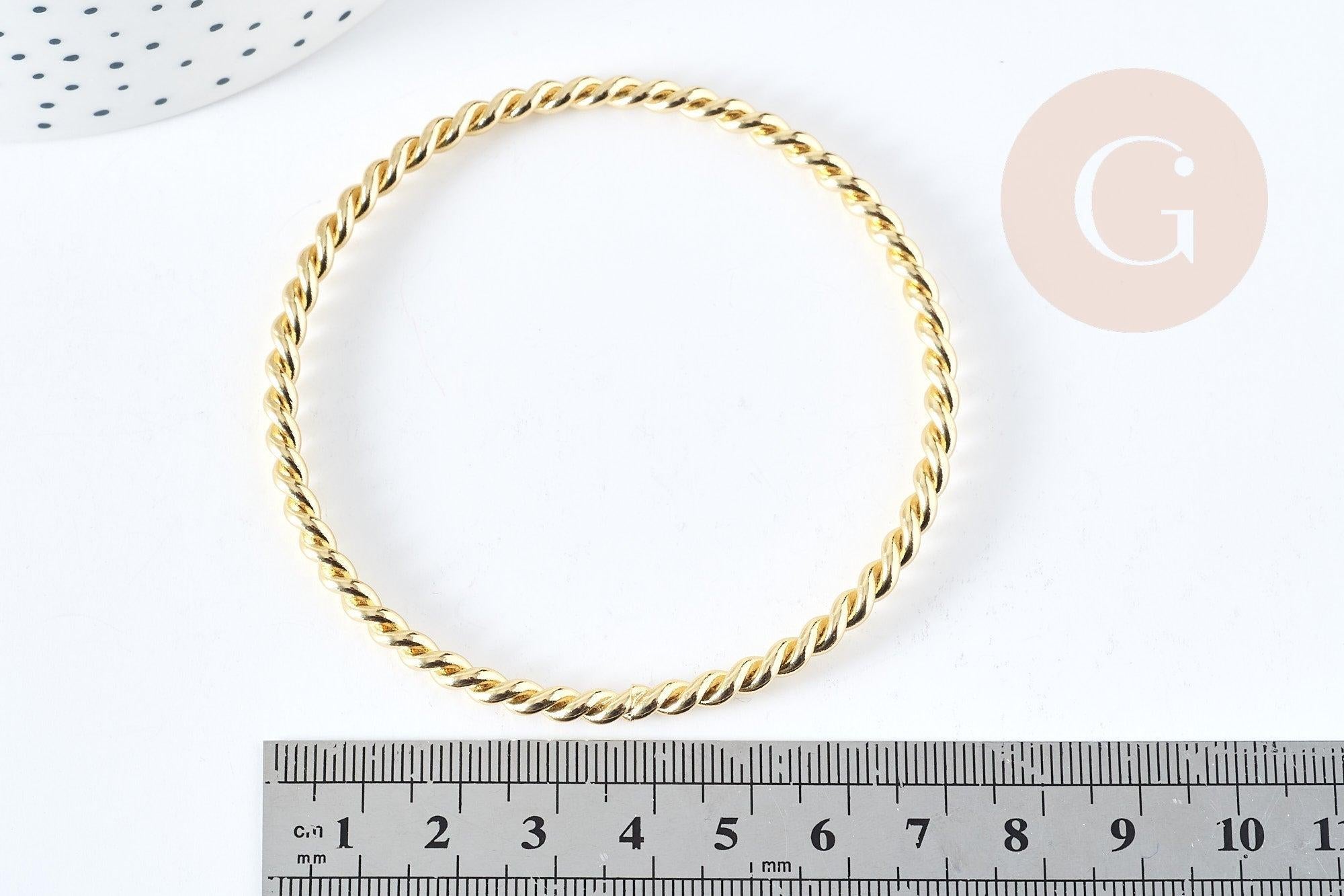 Brazalete grueso 4 mm de latón dorado retorcido 16K-67 mm, x1 (G8508)
