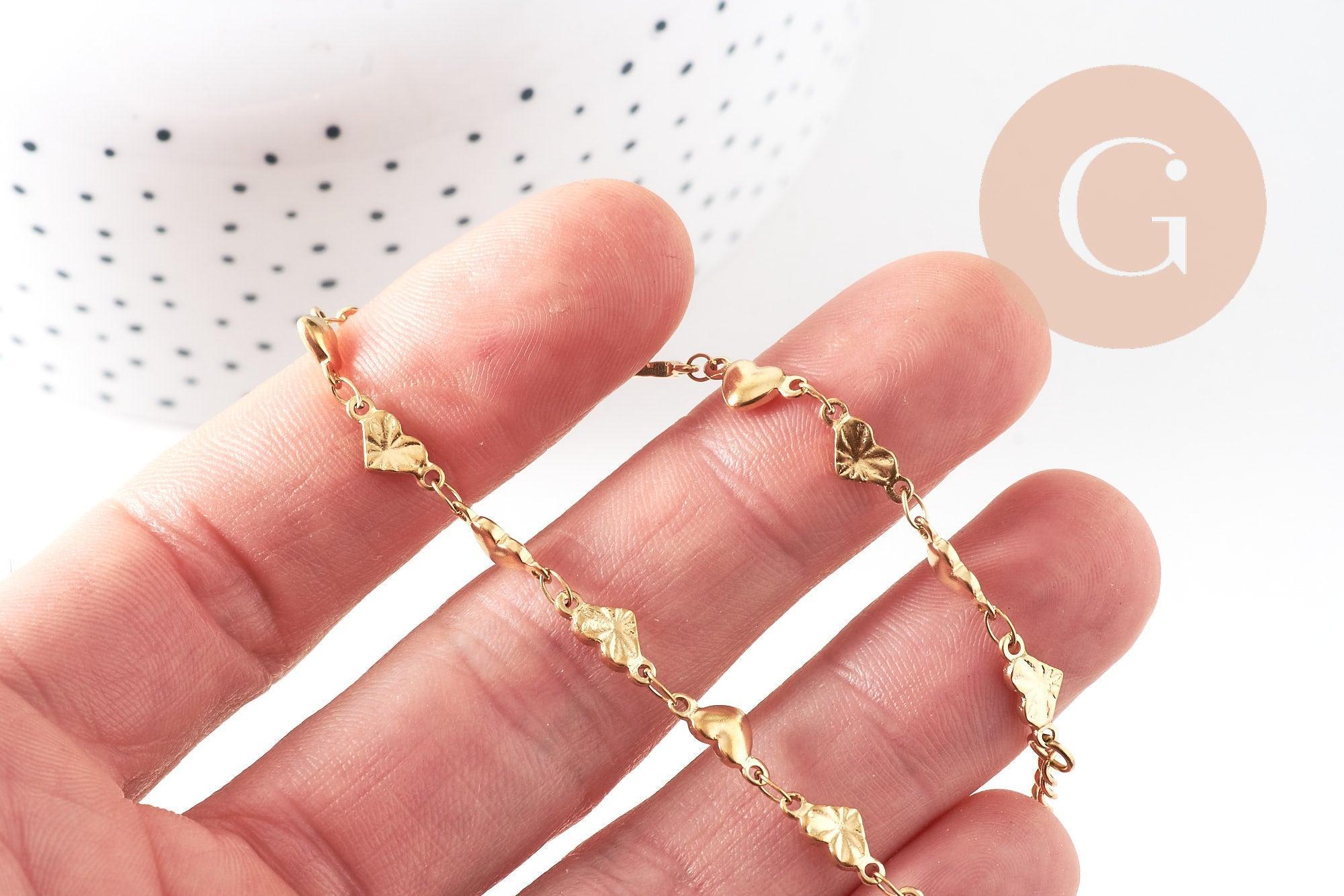 Brazalete de corazón de acero en oro de 14k, un elegante brazalete sin níquel en acero inoxidable dorado, 21 cm con extensión, cada uno