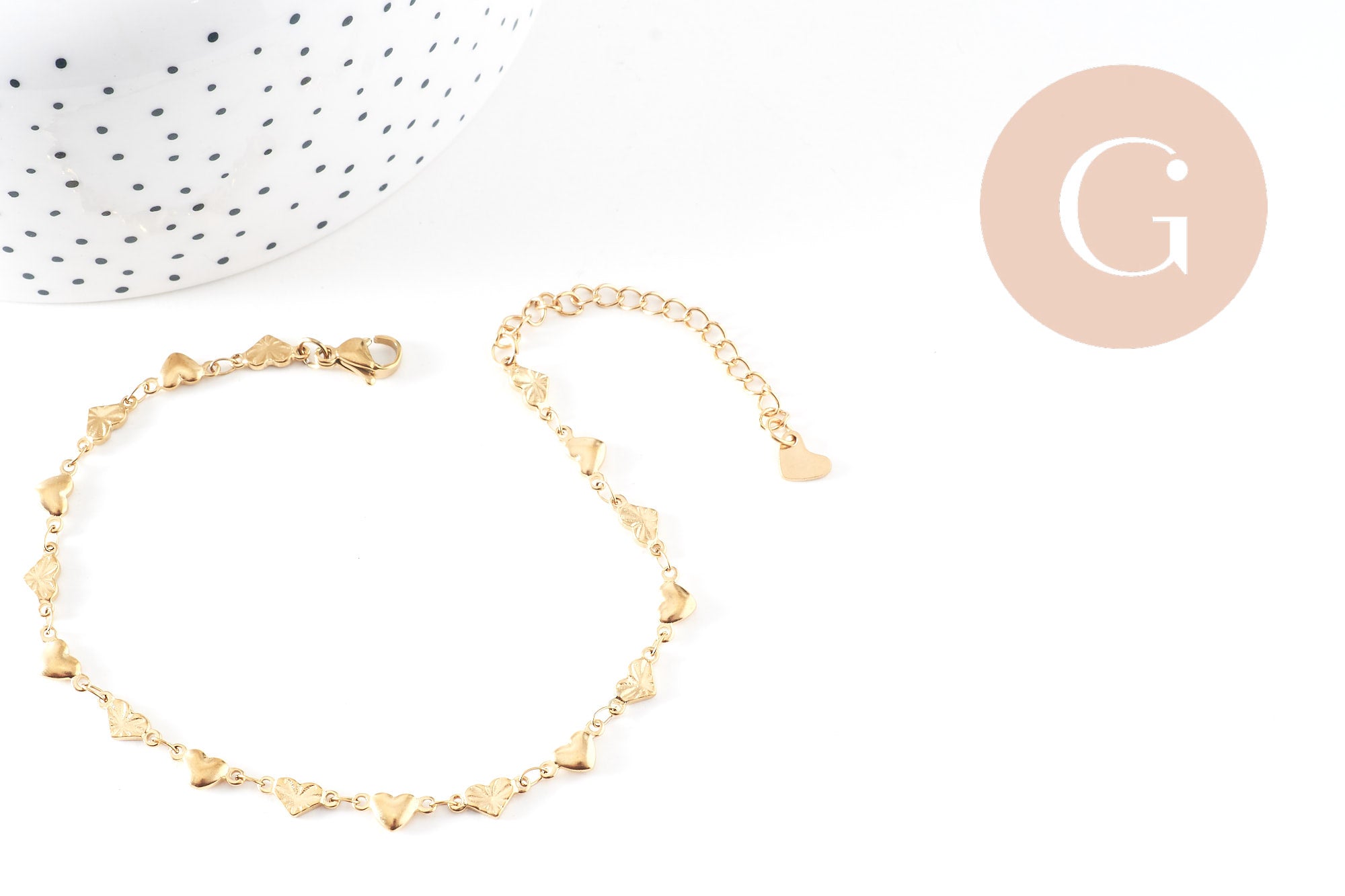 Bracelet acier doré 14k cœur 21cm, x1 (G5346)