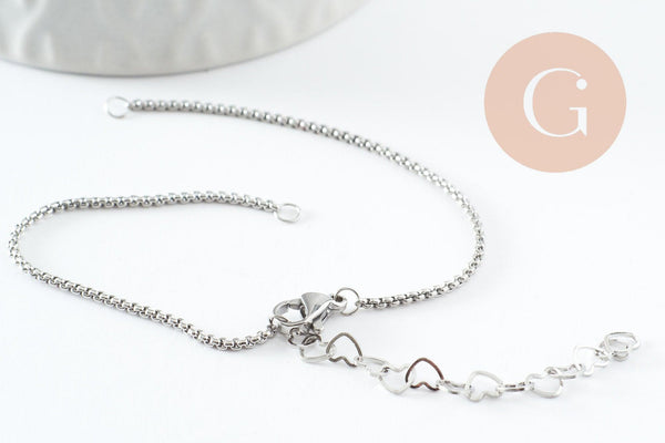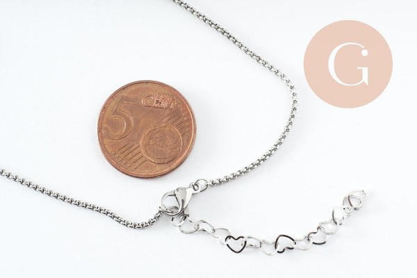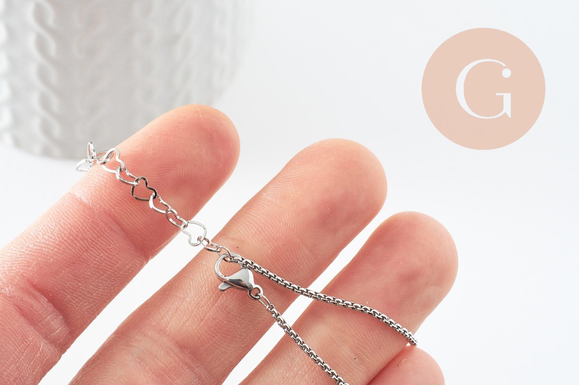La cadena está muy bien terminada con una cadena de extensión en forma de pequeños corazones.