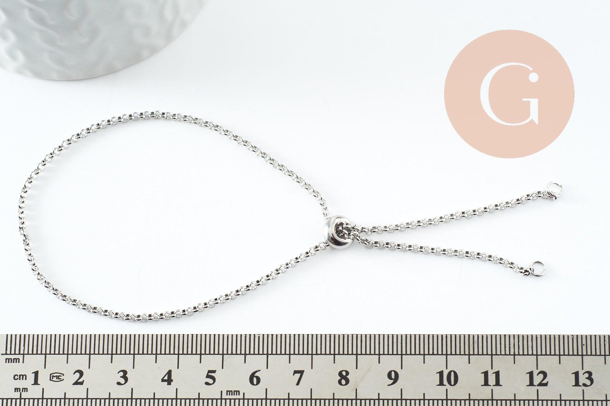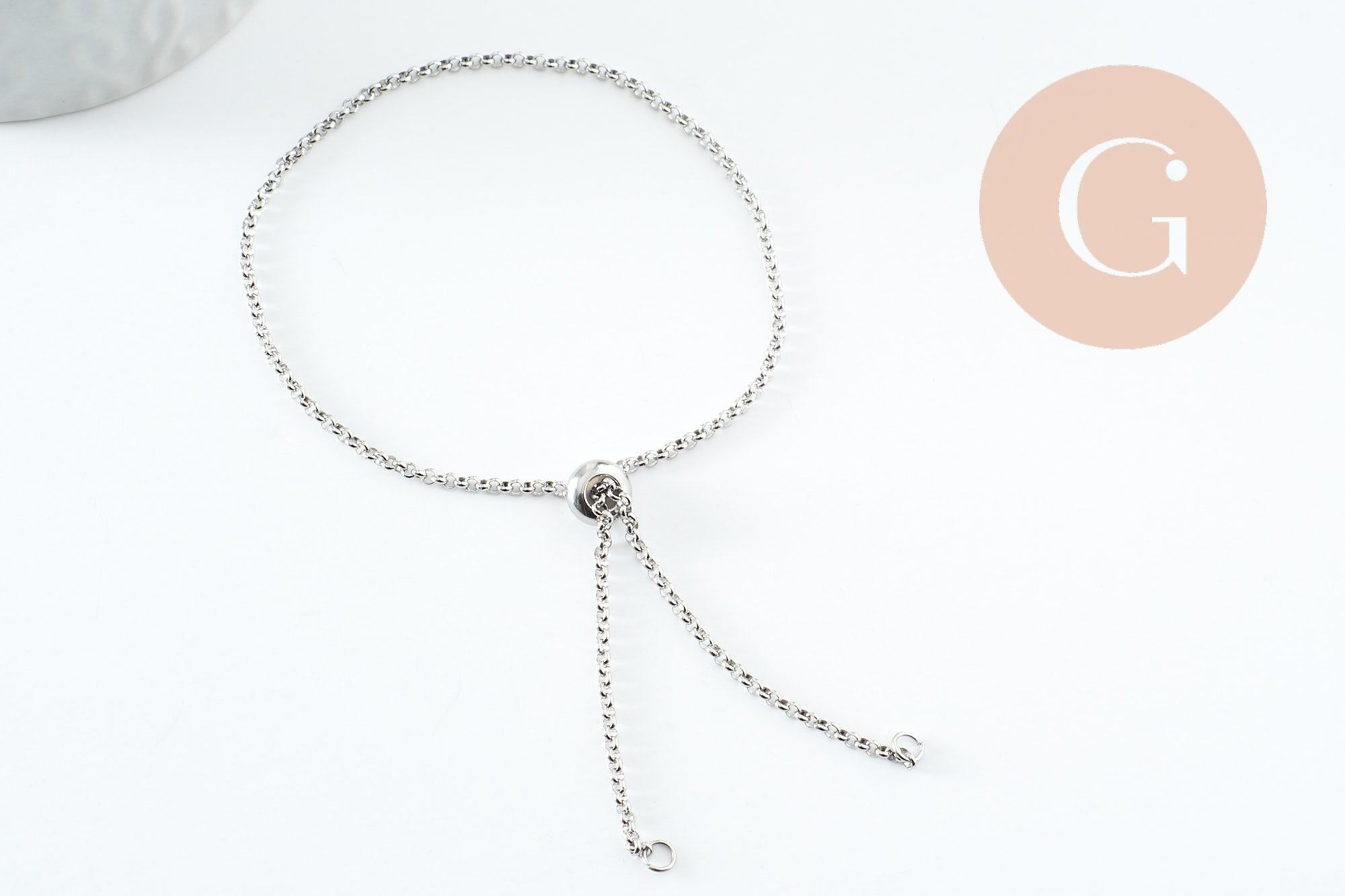 Base de bracelet réglable chaine rollo acier inoxydable platine 2mm/ 30.5cm, x1 (G9492)