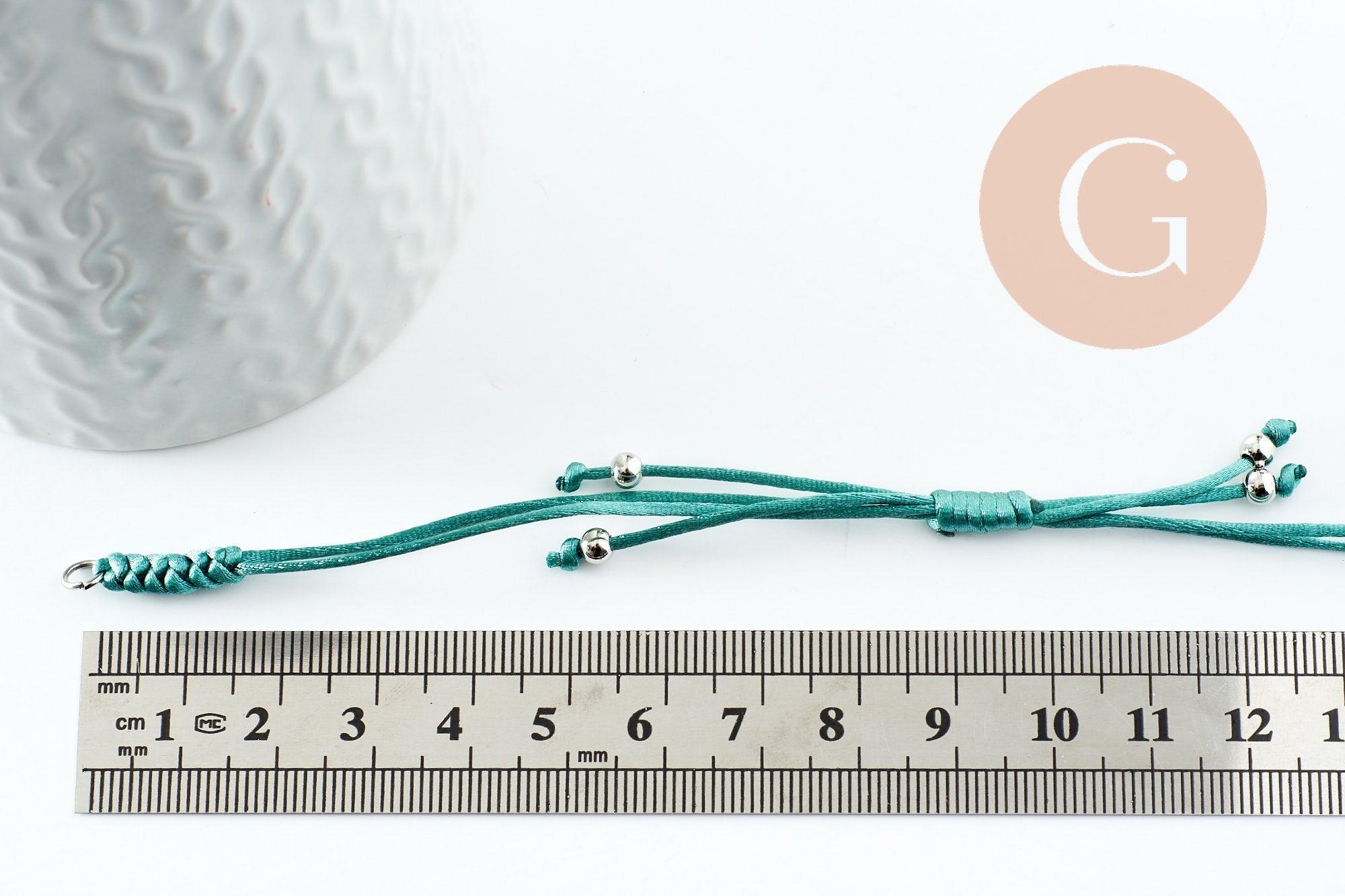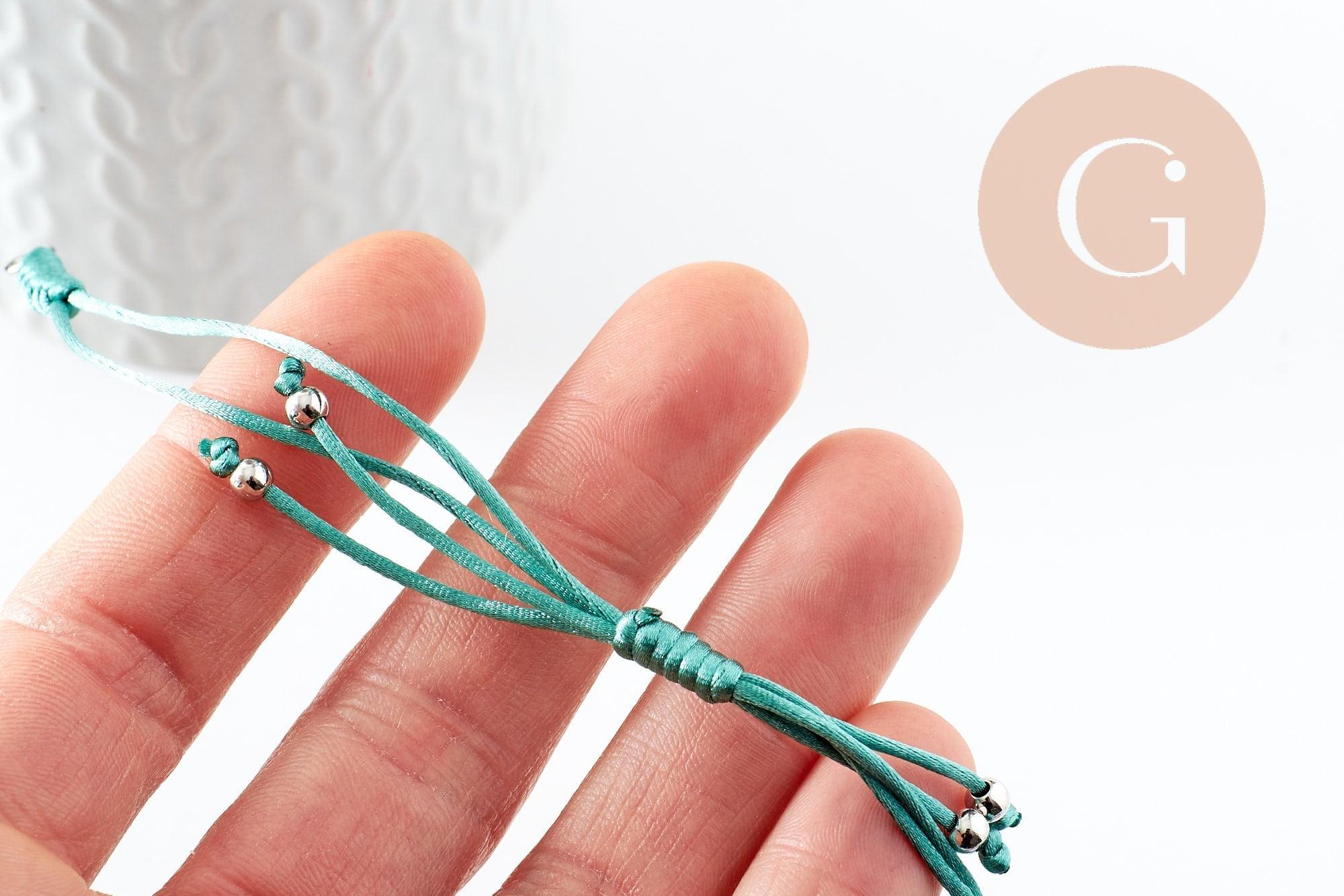 Esta base de pulsera ajustable de cordón de poliéster con cuentas y anillos de color platino te permitirá personalizarla con un conector de tu elección para crear pulseras rápidamente.