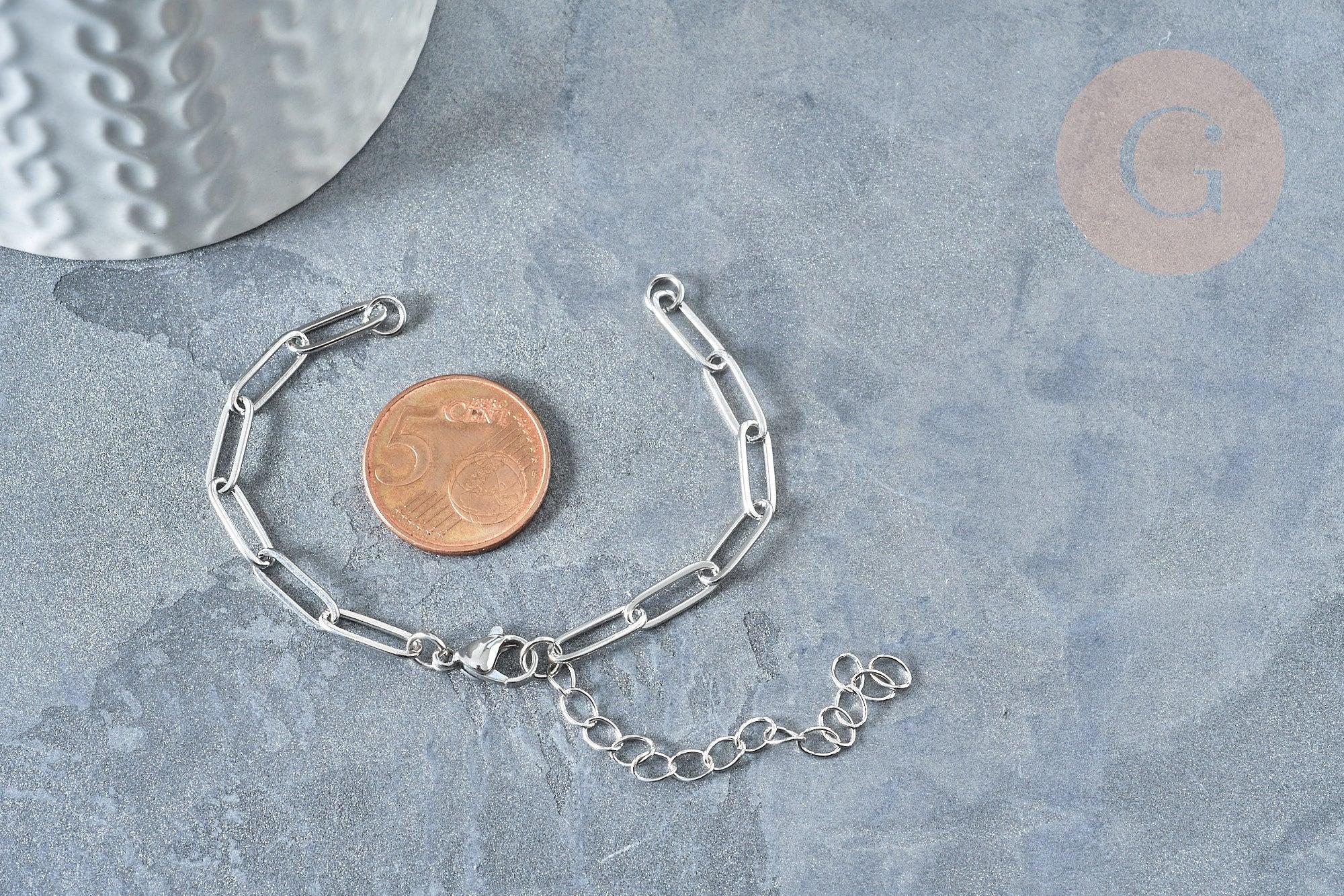 Bracelet réglable maille trombone fantaisie platine acier 304 inoxydable 14.5cm, x1 (G7885)