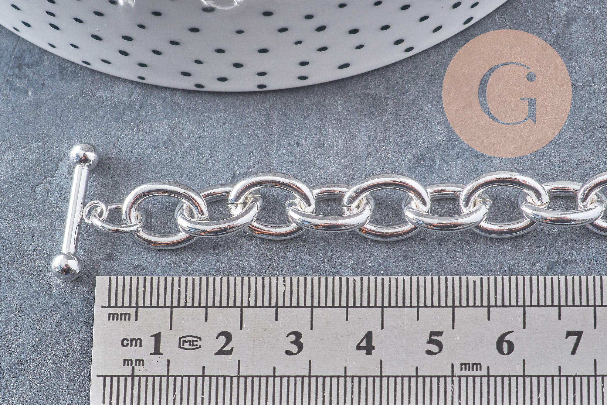 Bracelet très grosse maille acier 304 inoxydable argenté 20.4cm, x1 (G10922)