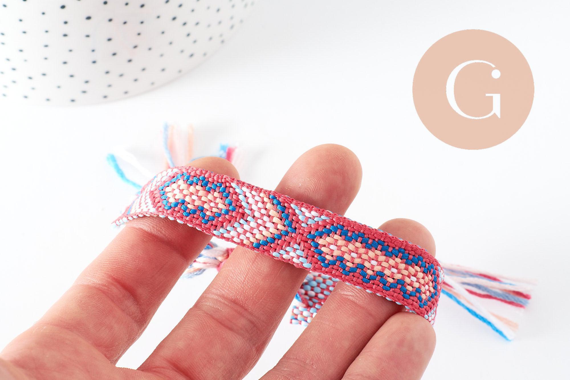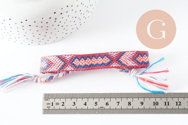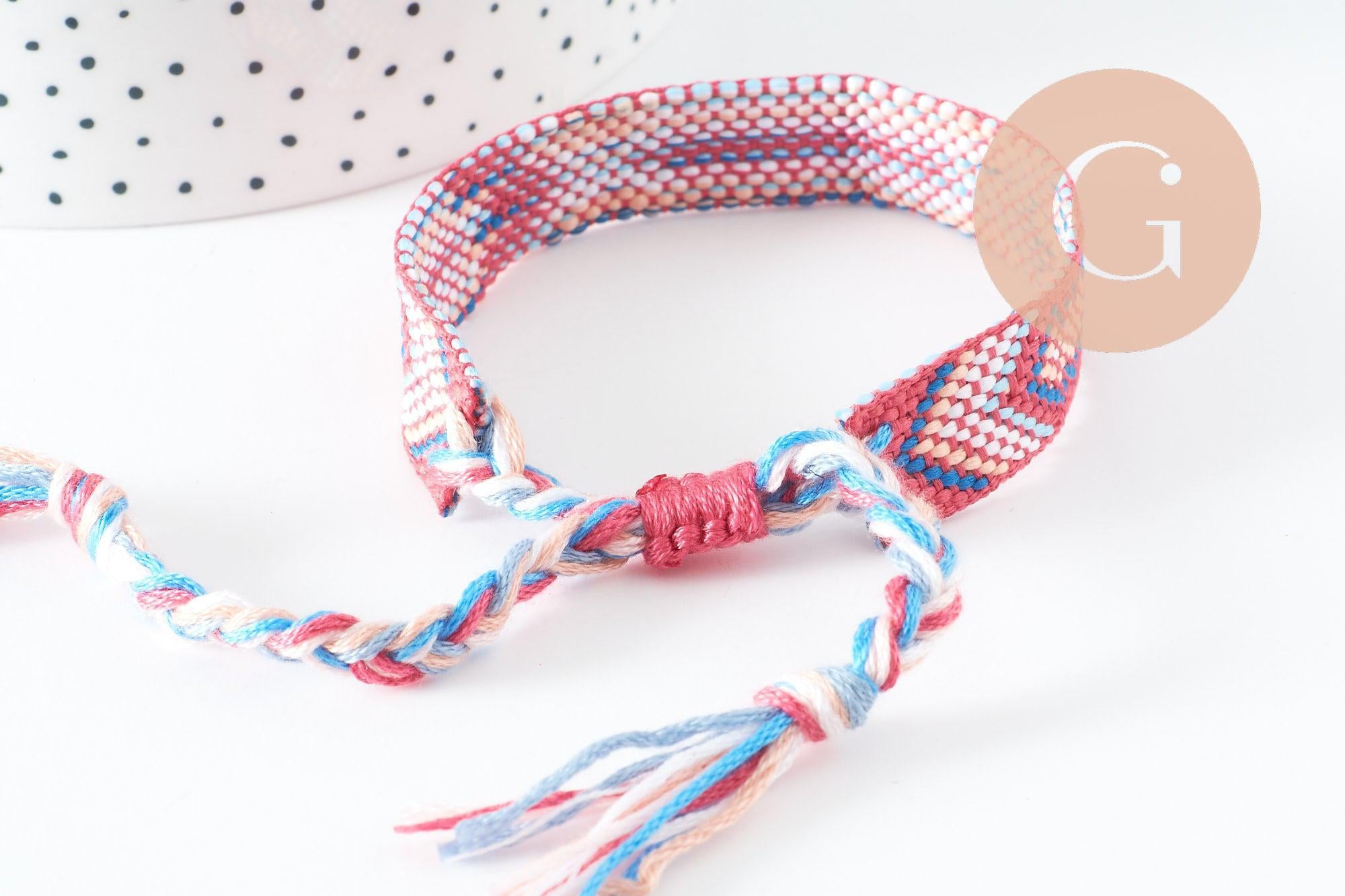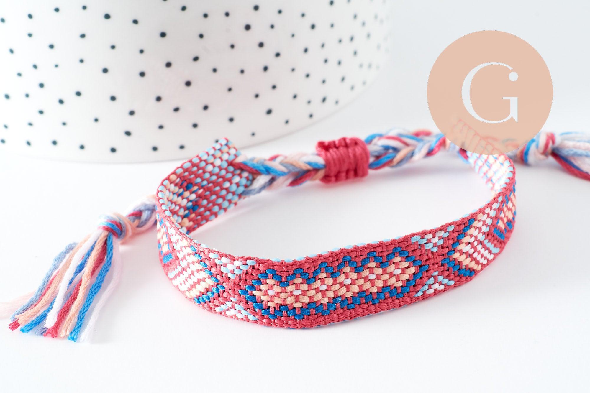 Aporta un toque colorido y simbólico a tu estilo con esta pulsera brasileña tejida, que mezcla tonos de rosa y turquesa .