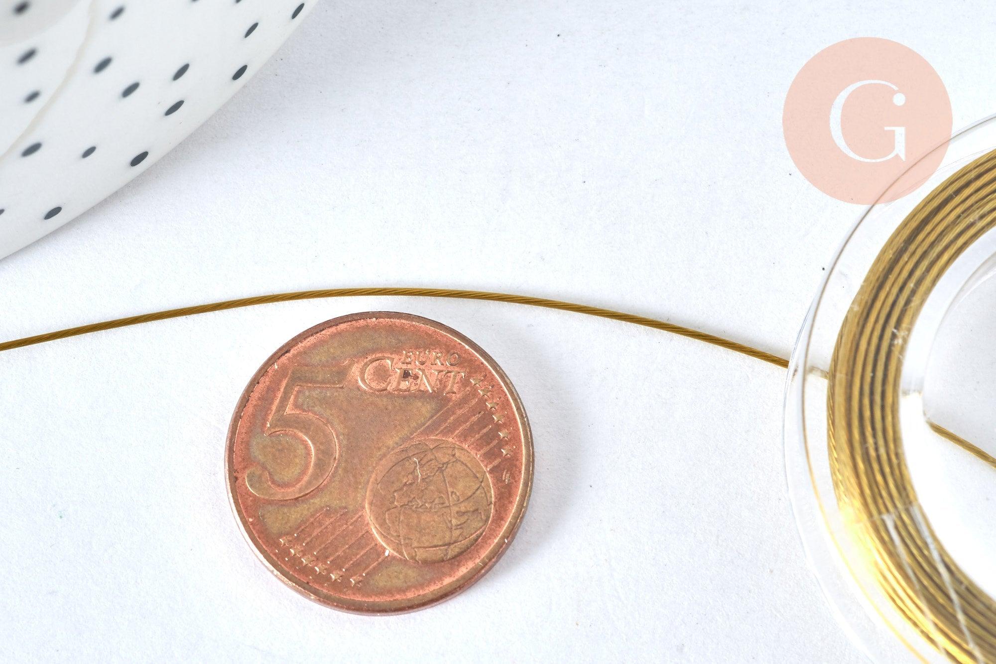 Fil câblé gainé acier inoxydable doré 0.6mm,x1 Bobine de 10 mètres (G6777)