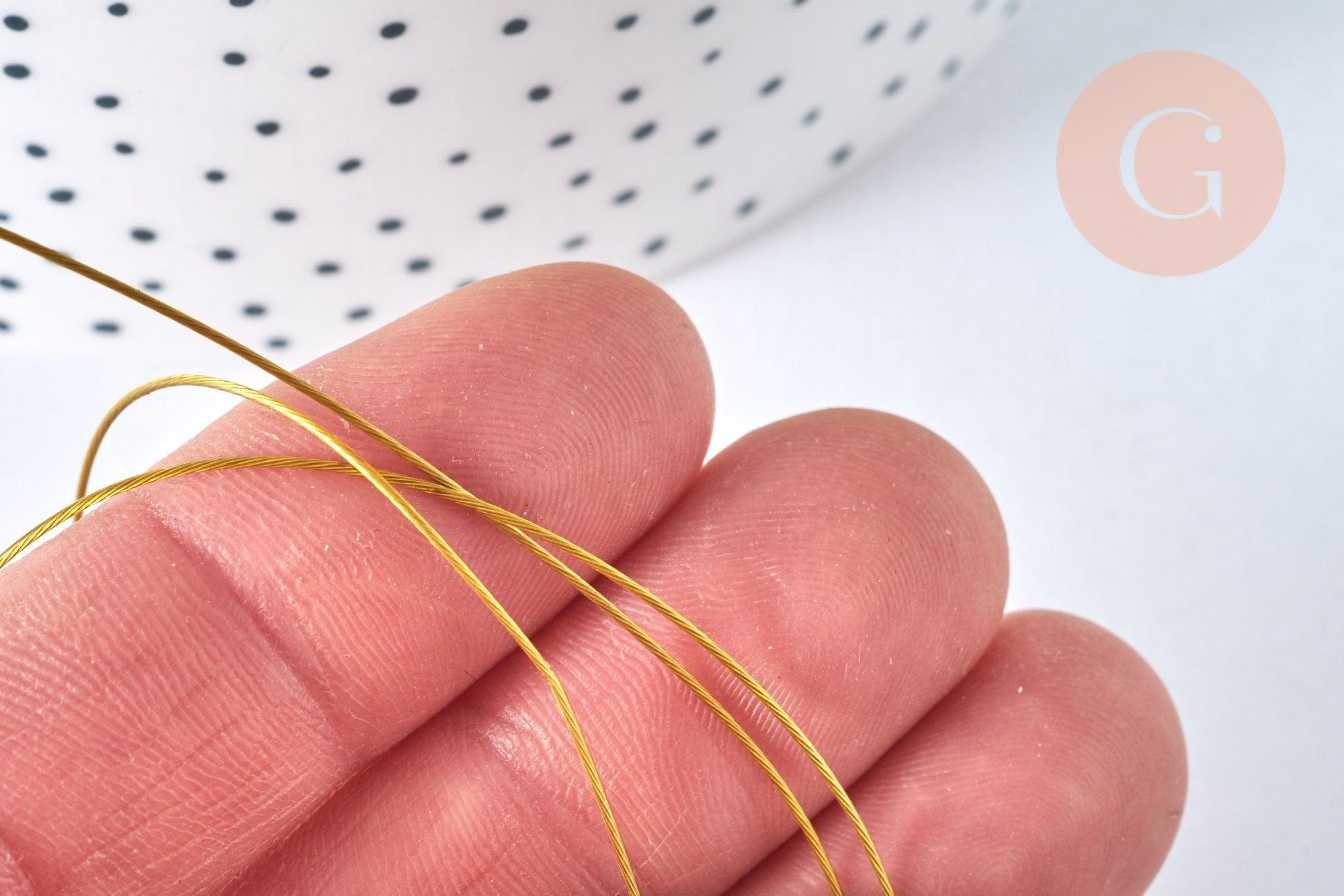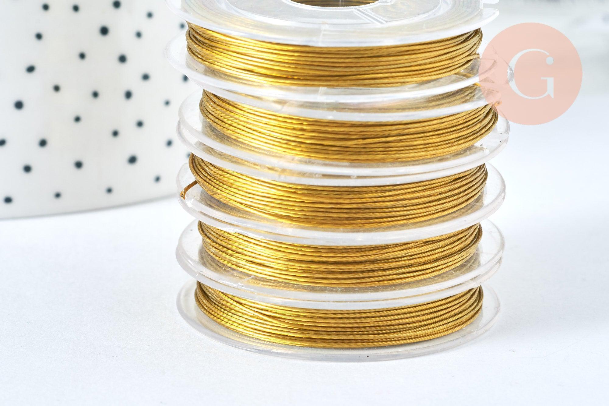 Este alambre de acero inoxidable chapado en oro de 0,6 mm es perfecto para crear bisutería , generalmente se utiliza para enhebrar cuentas en collares, pulseras o incluso aretes.
