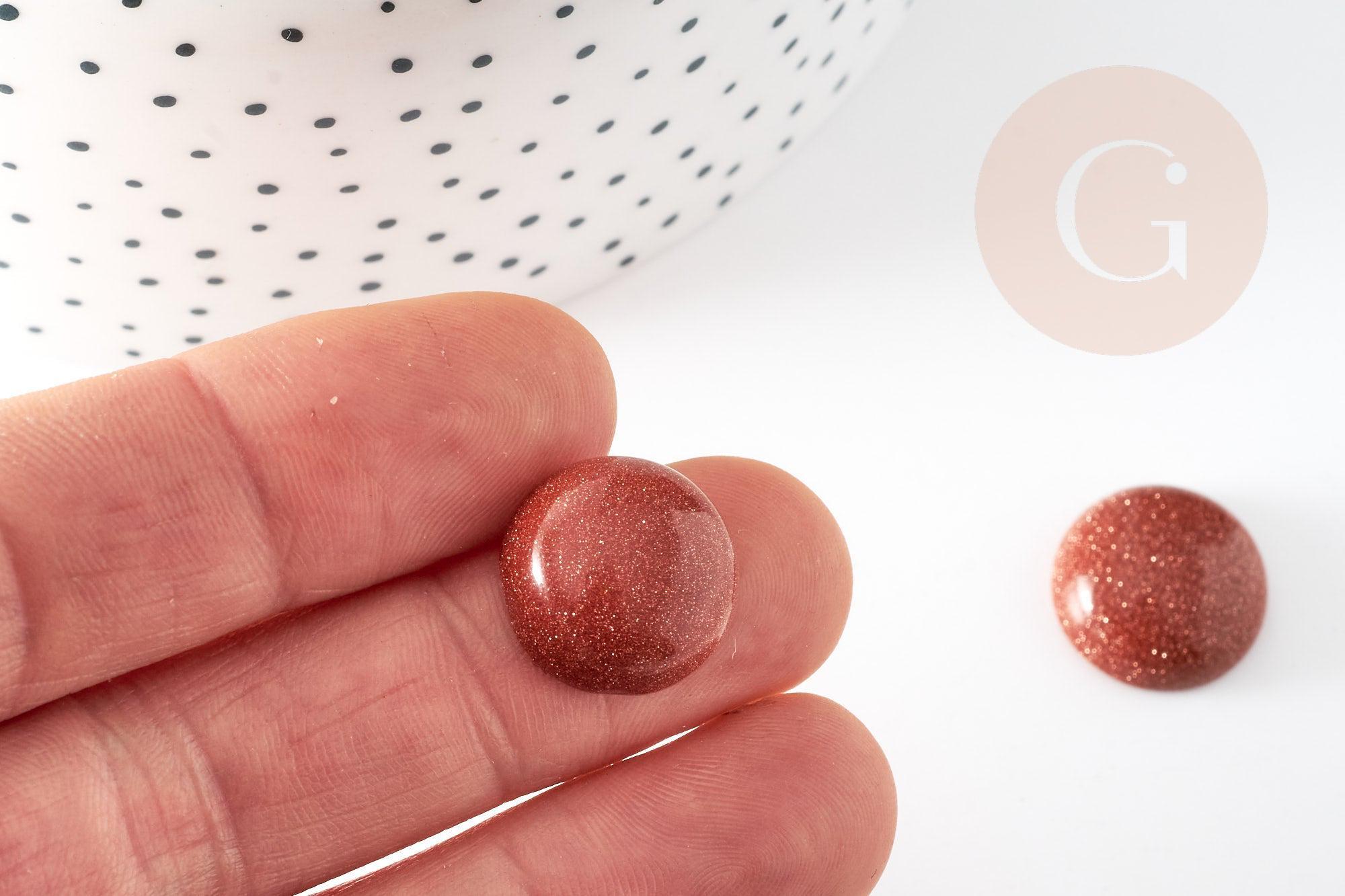 Un cabujón de piedra solar redondo, una piedra luminosa y solar para crear tu bisutería DIY.