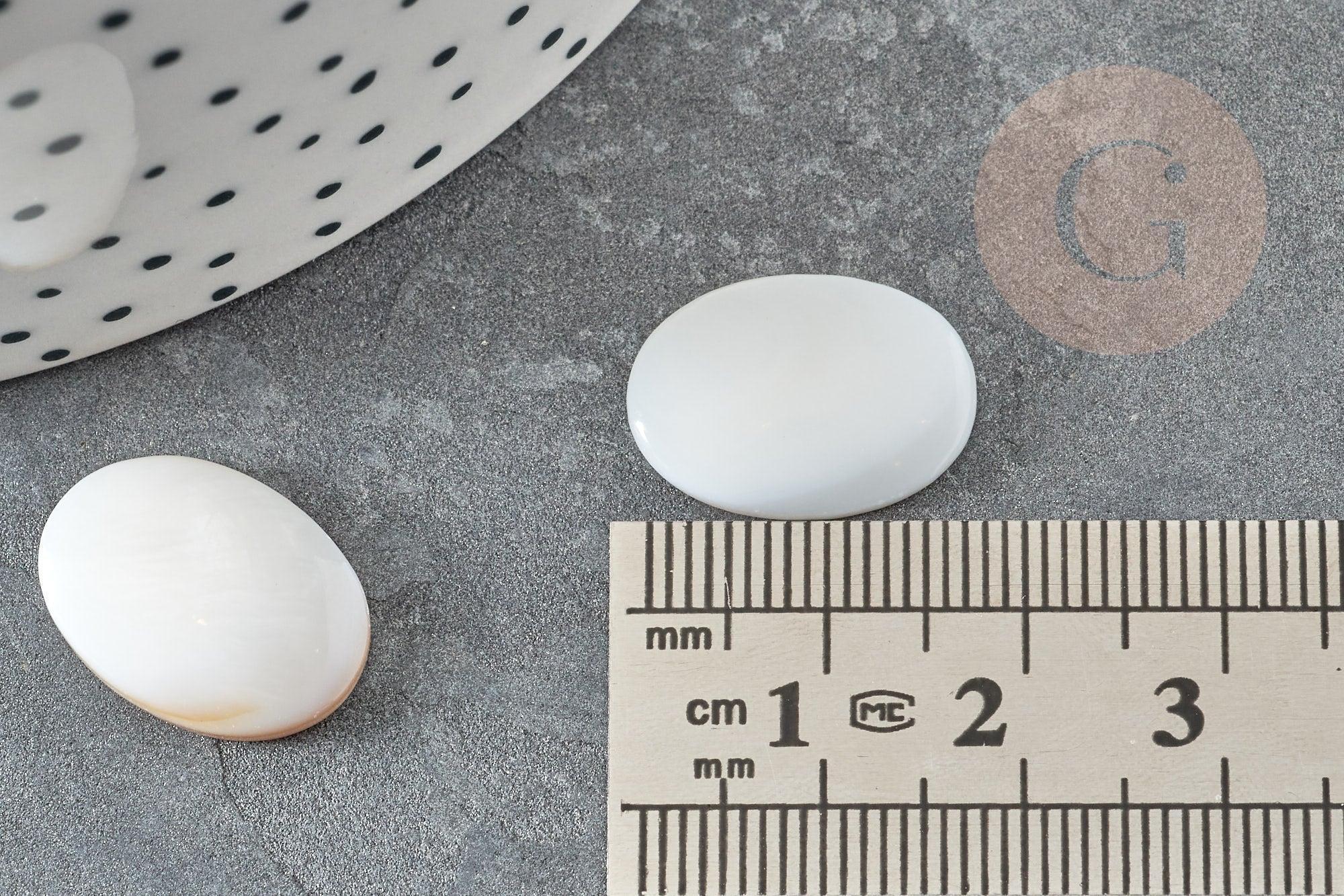 Para personalizar tu Bisutería , y otros complementos en textil o piel suave, déjate seducir por este cabujón ovalado de nácar blanco .