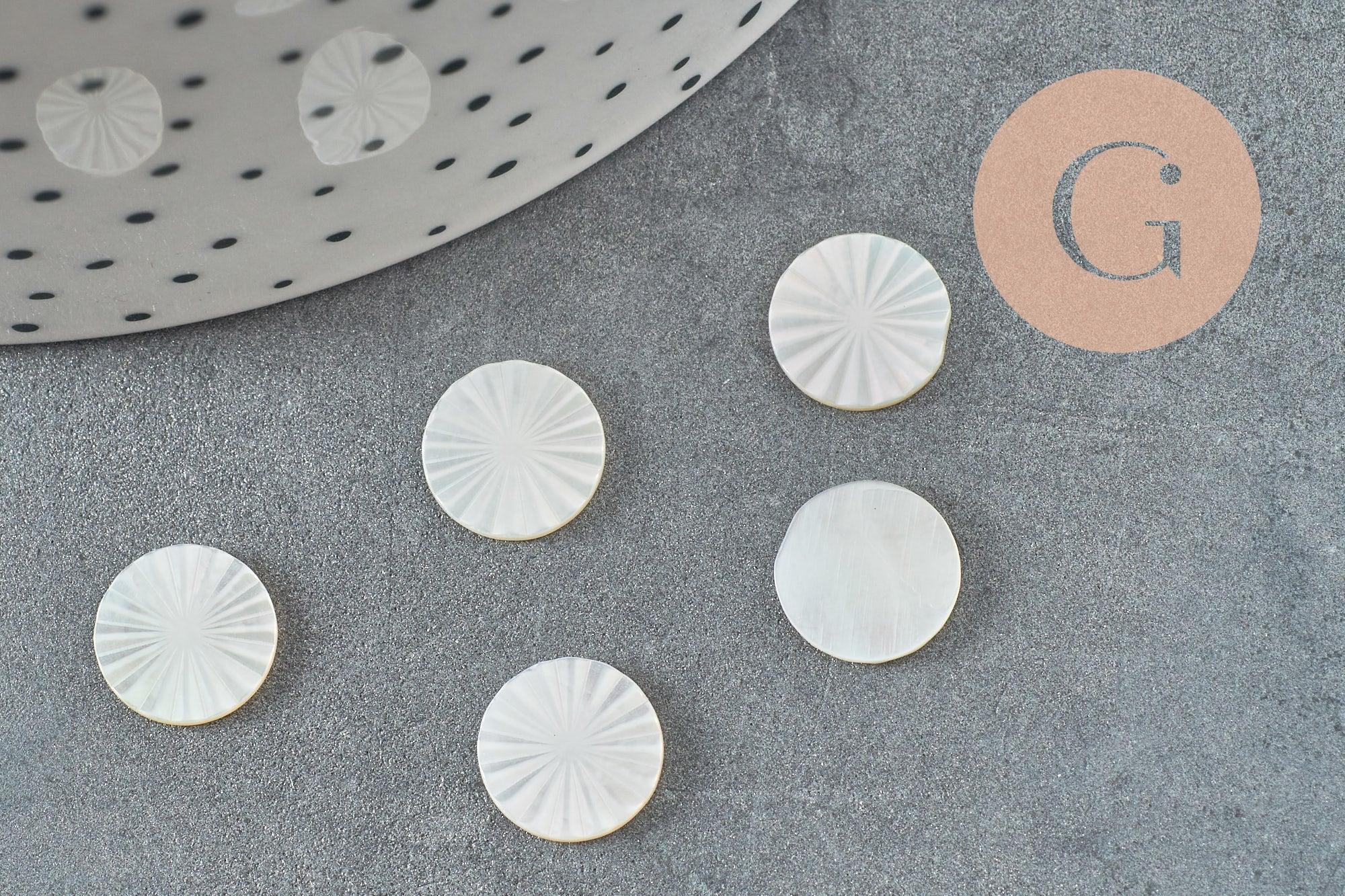 Realza tus creaciones de bisutería DIY con este cabujón redondo de 10 mm grabado en nácar blanco natural .