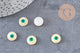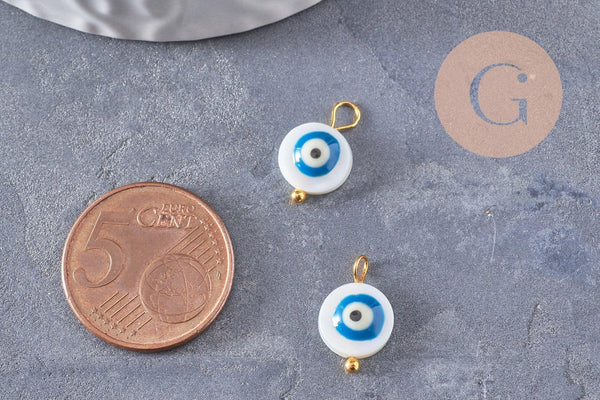 breloque ronde nacre naturelle blanche mauvais oeil zamac doré 14mm, x2 (G9922)