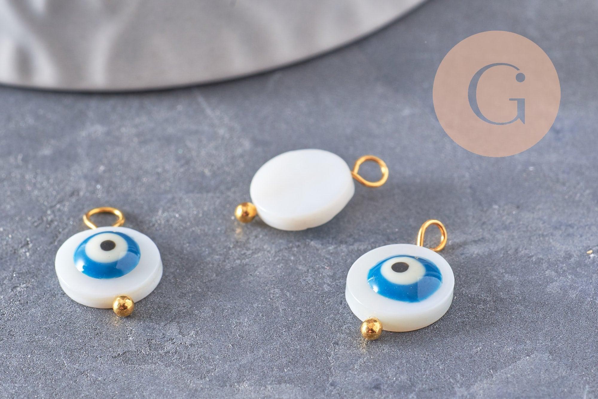 Para personalizar sus joyas y otros accesorios textiles o de piel suave, déjese seducir por este charm de nácar blanco que representa el ojo de la suerte.