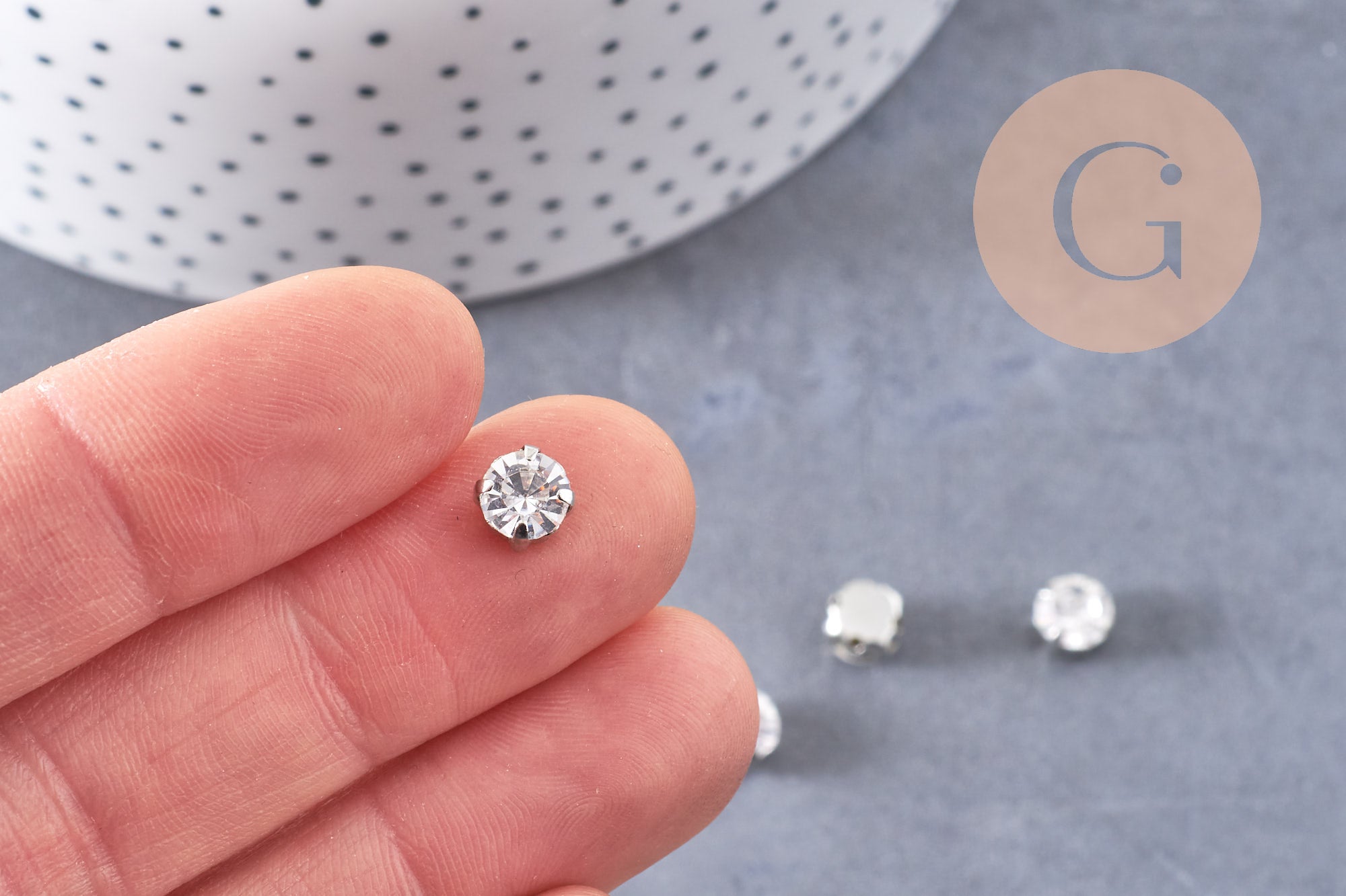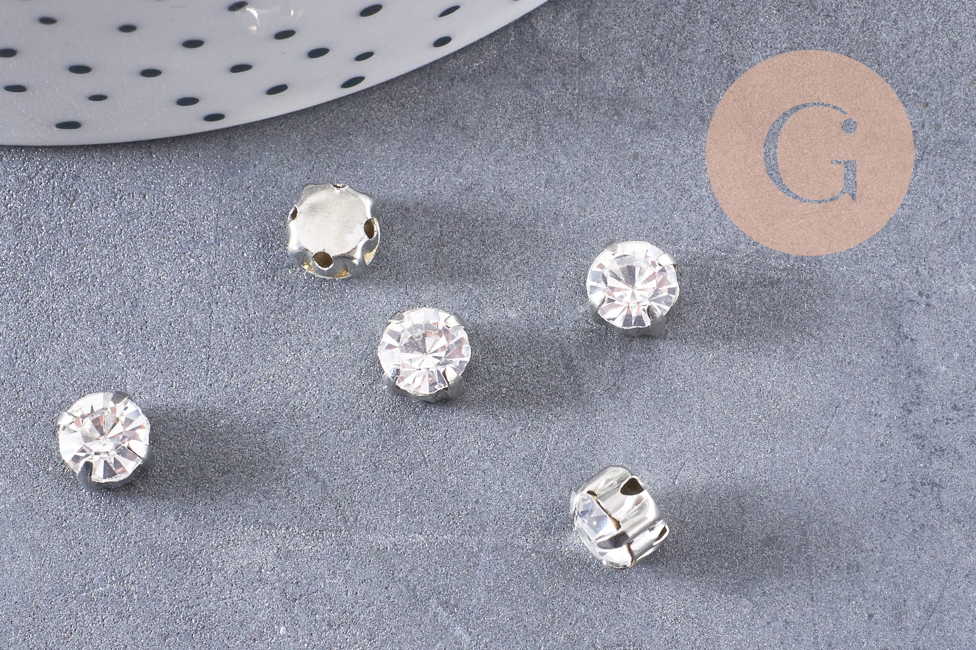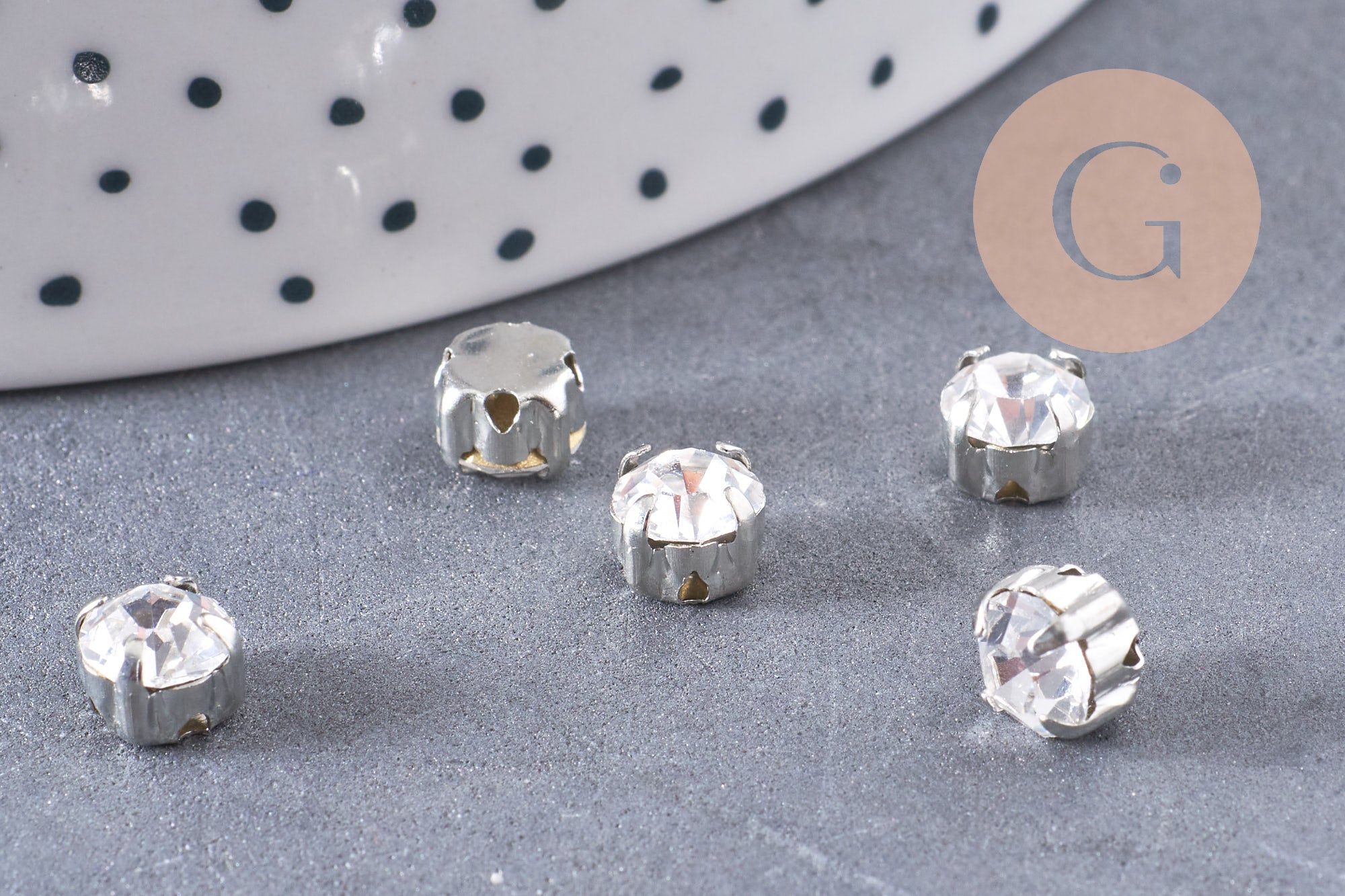 Cabujón cuadrado, cristal transparente, metal de platino, para coser, 6x5mm, x50 (14.5g) (G2247)