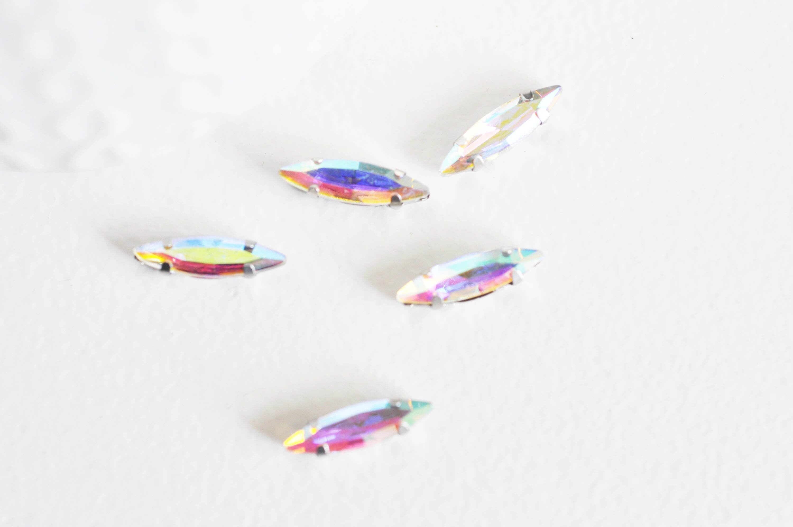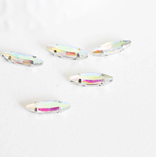 Cabujón de cristal de lanzadera iridiscente, suministros creativos, cabujón transparente, cristal, cabujón de plata, cabujón de costura, creación de joyas, 4x15 mm