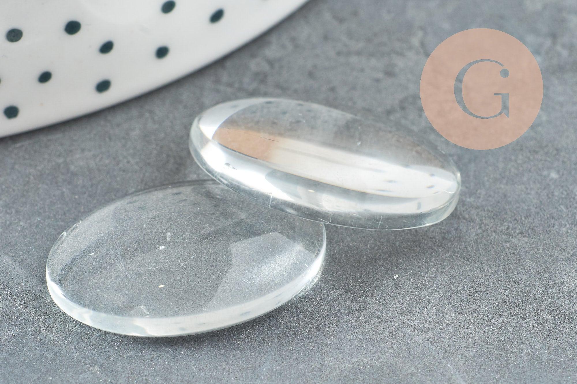 Cabochon ovale verre transparent 25mm, x10 (G0269)
