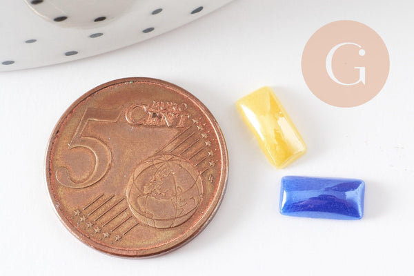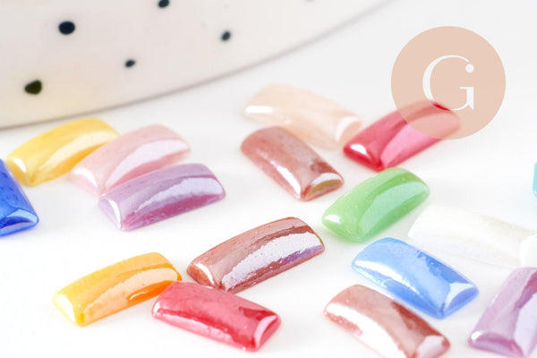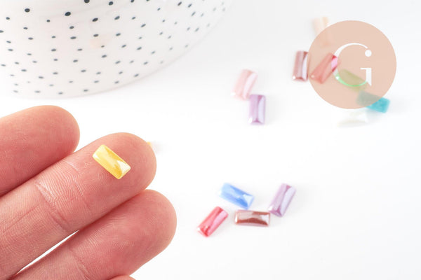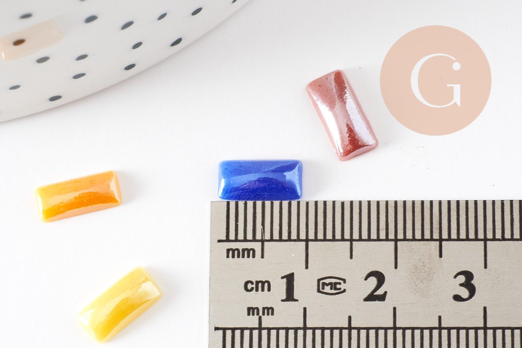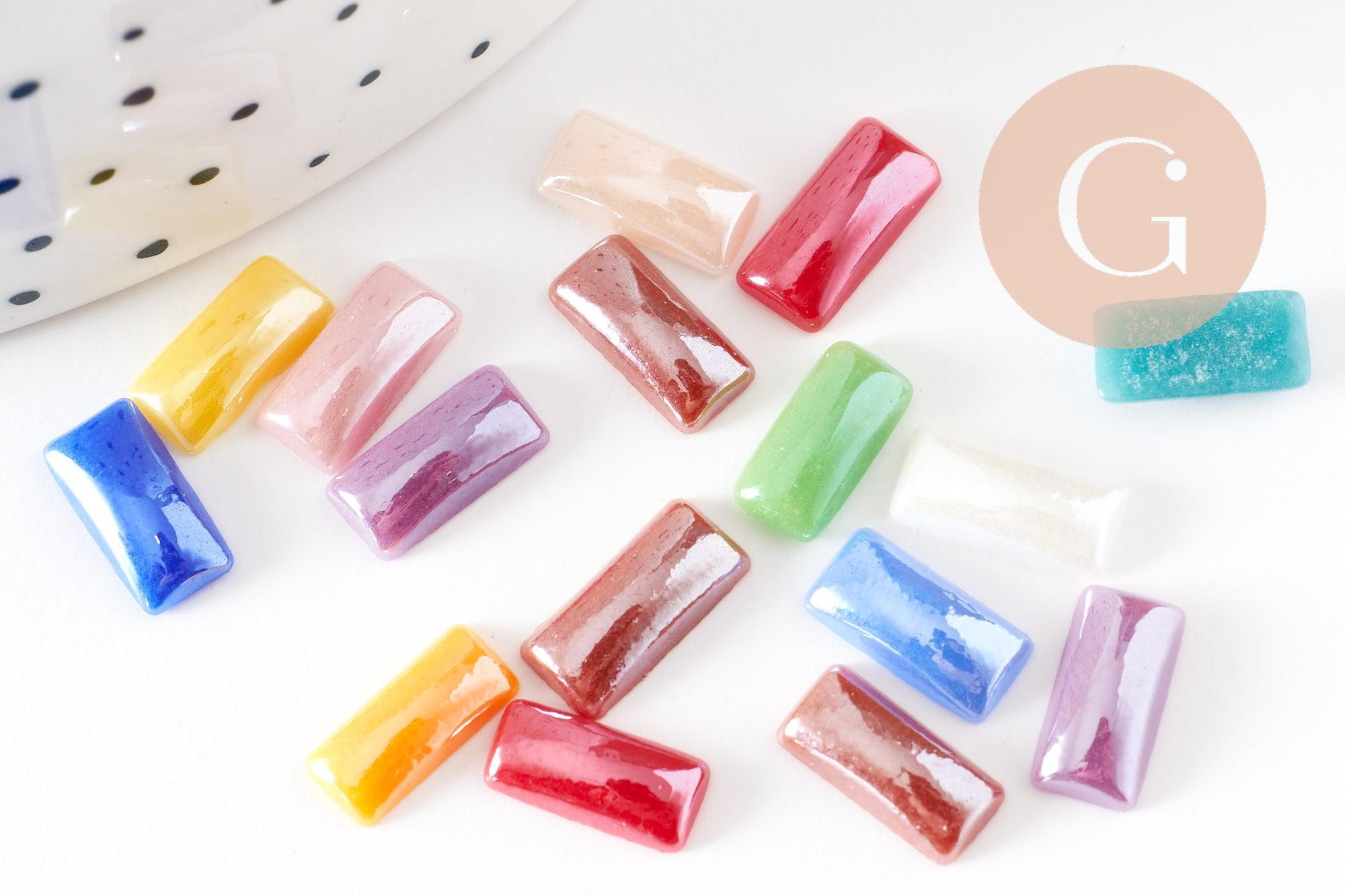 Estos cabujones rectangulares de vidrio iridiscente, en una variedad de colores, son ideales para crear una amplia gama de bisutería. Puedes darles un toque más original a tus joyas colocándolos en un anillo, añadiéndolos a una pulsera o incluso a unos puños.