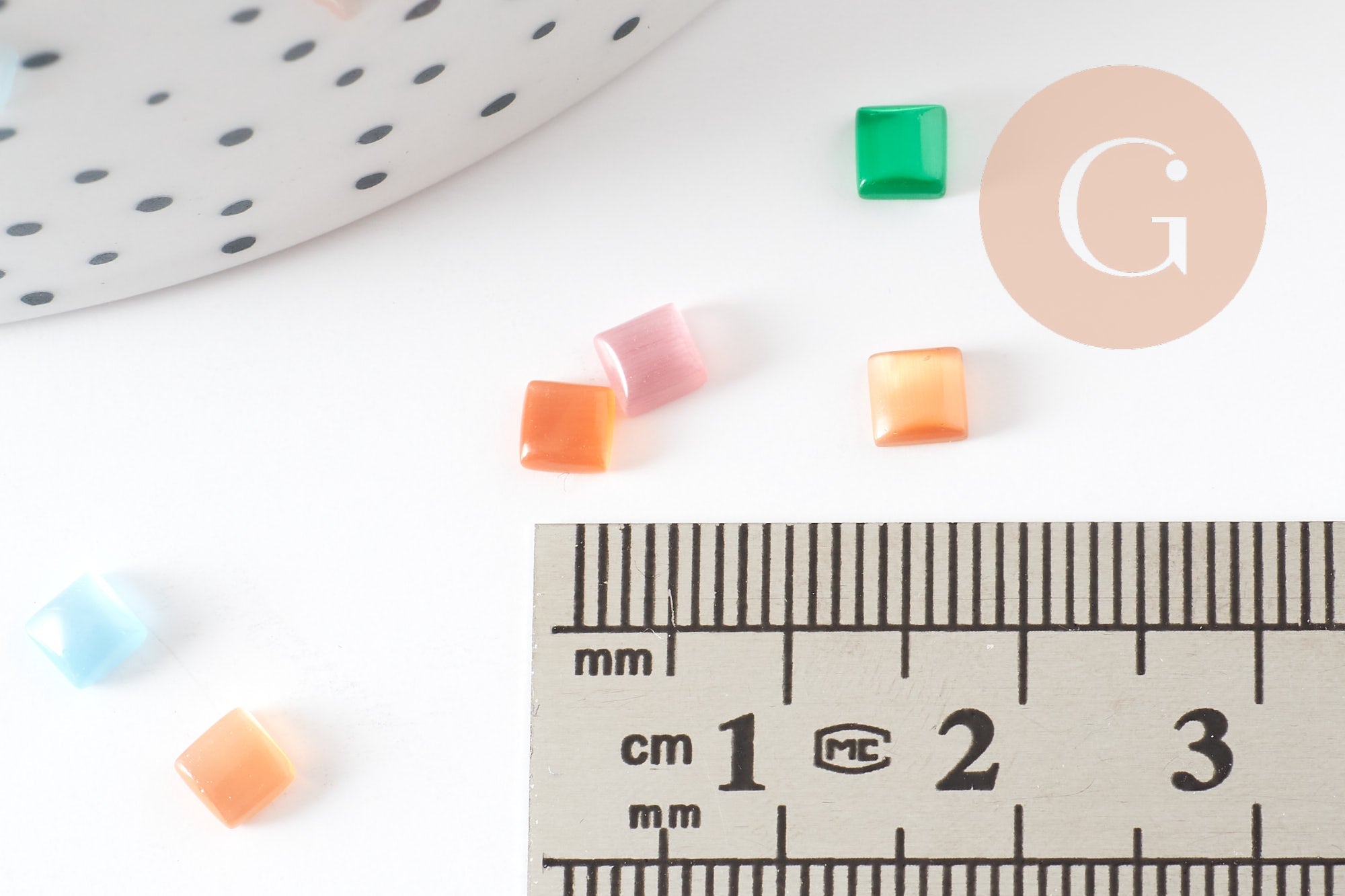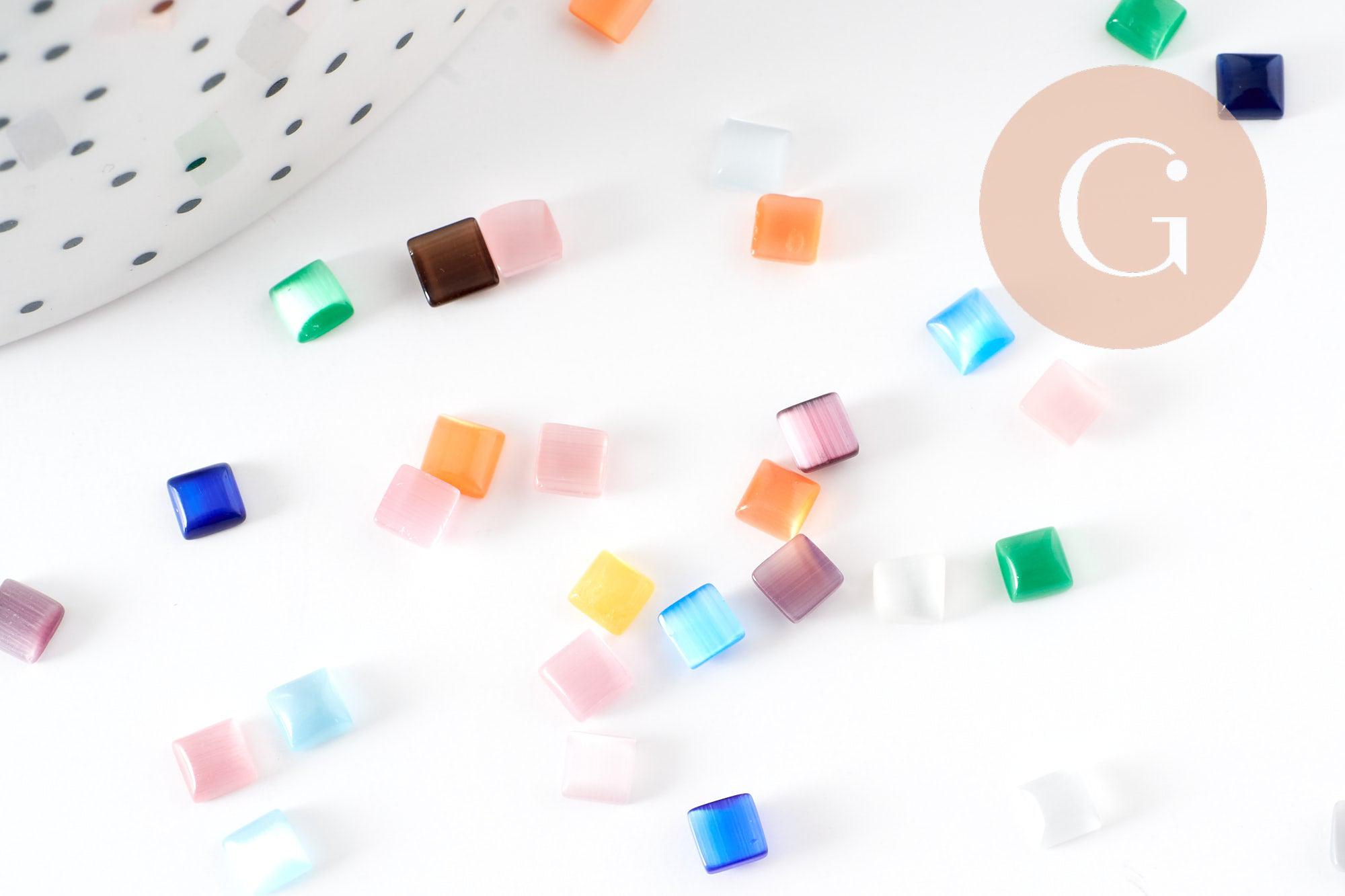 Déjese seducir por estos cabujones de cristal de ojo de gato cuadrados multicolores de 4 mm de ancho.