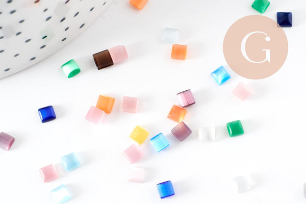 Cabochon carré verre oeil de chat multicolore 4x4mm, x20 (G2290)