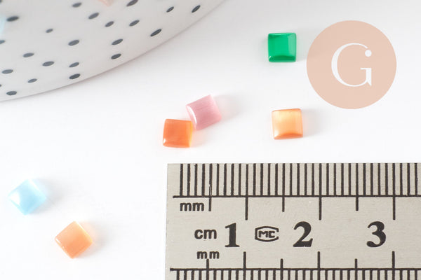 Cabujón cuadrado de cristal ojo de gato multicolor de 4x4 mm, x20 (G2290)