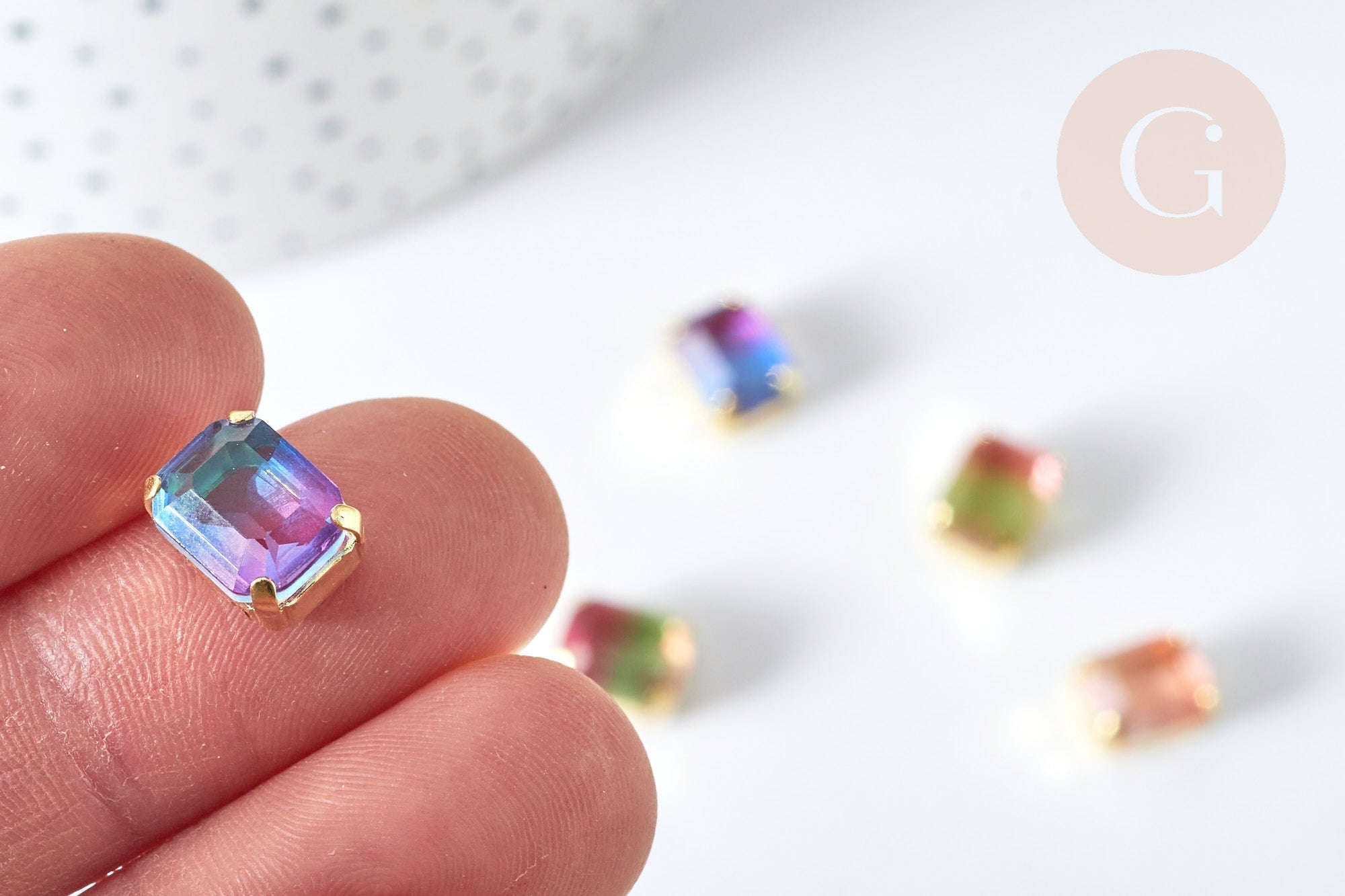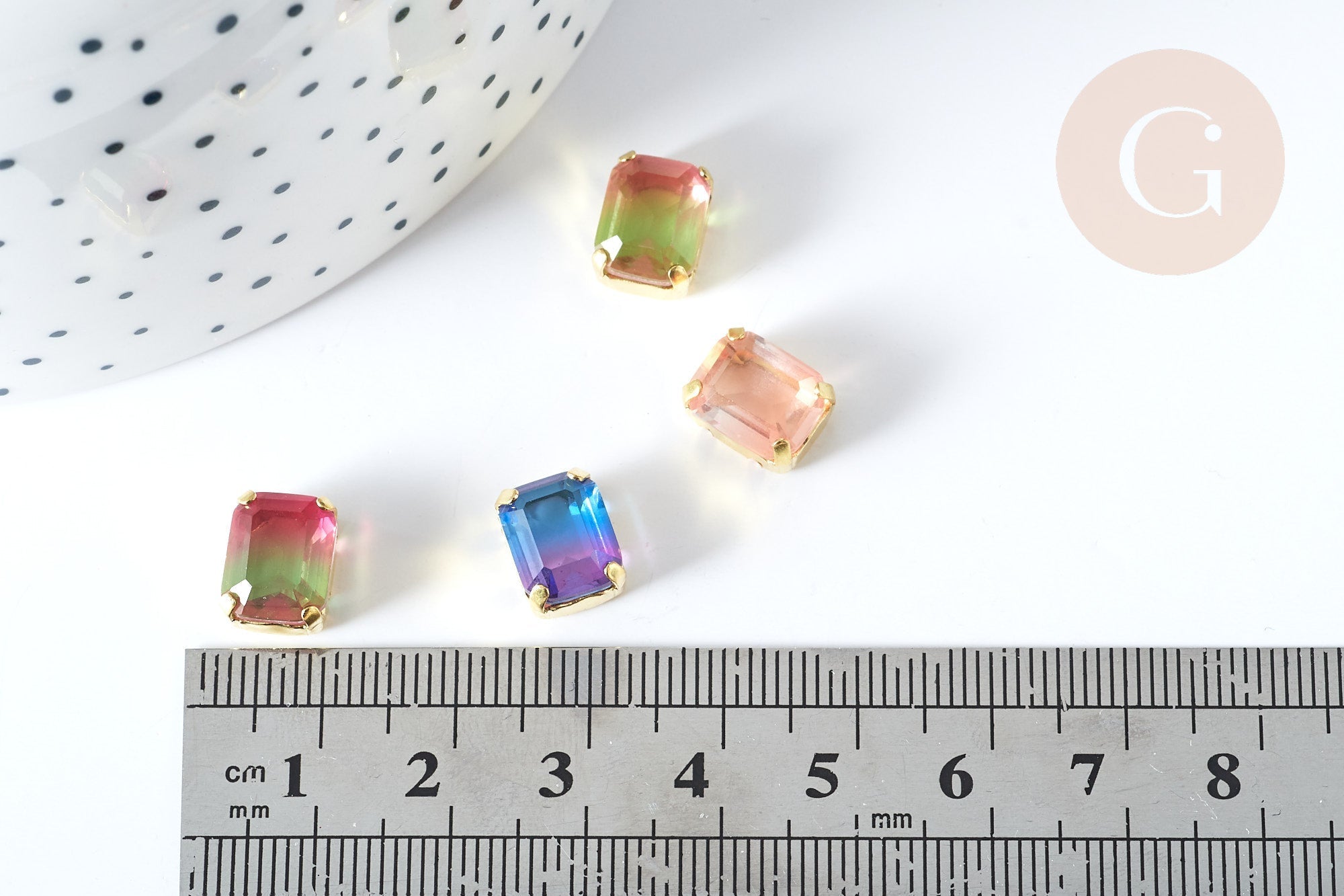 Joyas deslumbrantes son tuyas gracias a este cabujón de cristal transparente con degradado. Está listo para usar con su engarce de garra de latón chapado en oro preperforado con cuatro agujeros. Crea una pulsera única ensartando cabujones de cristal en...