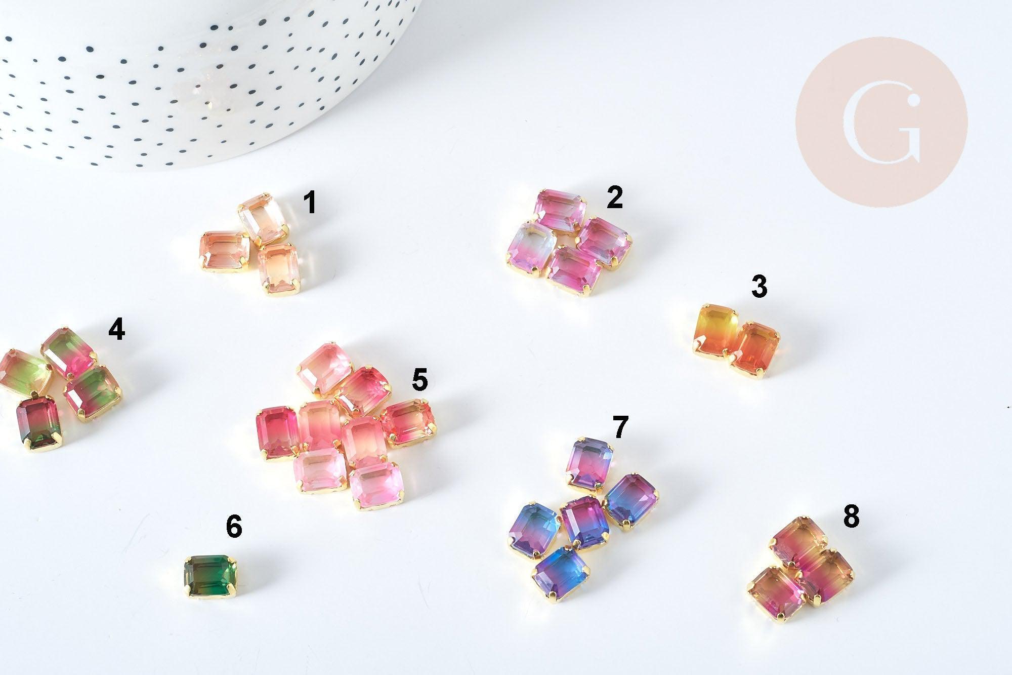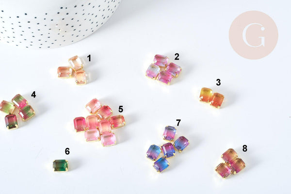Cabujón EP de cristal rectangular transparente con degradado y montura de latón chapado en oro, 8x10 mm, x1