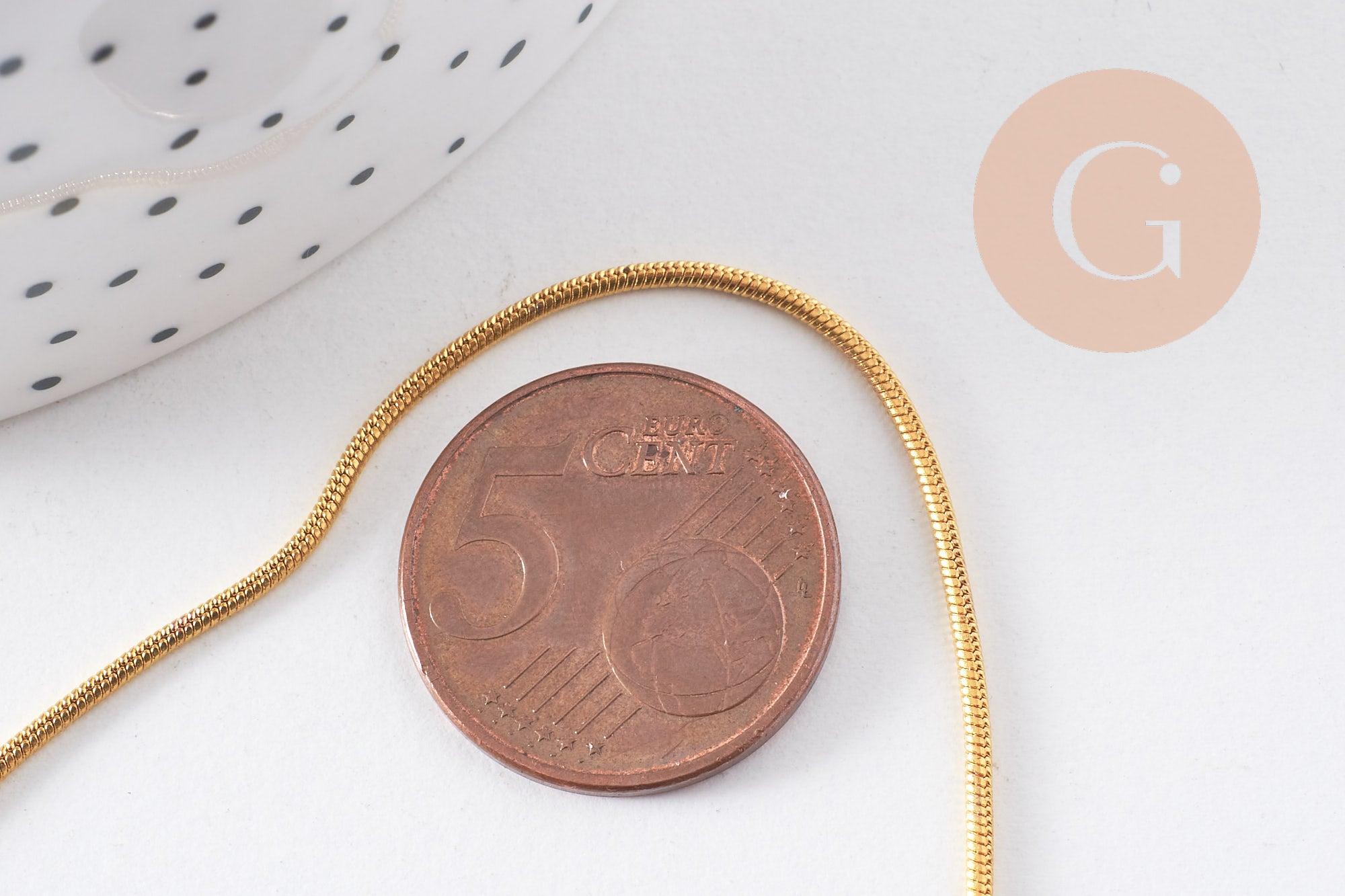Cadena de serpiente de latón bañado en oro fino, cadena de calidad, creación de joyas, cadena completa, cadena de oro, 1,5 mm, 43 cm, x1 (G10114)
