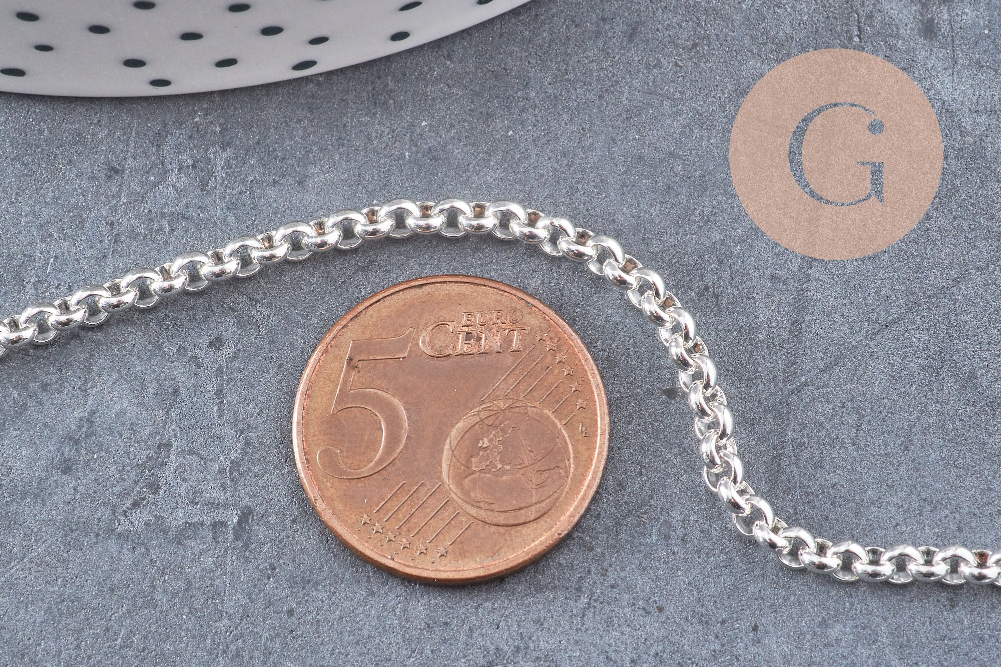 Chaine maille rolo acier 304 inoxydable argenté 3mm, x1 mètre (G10866)