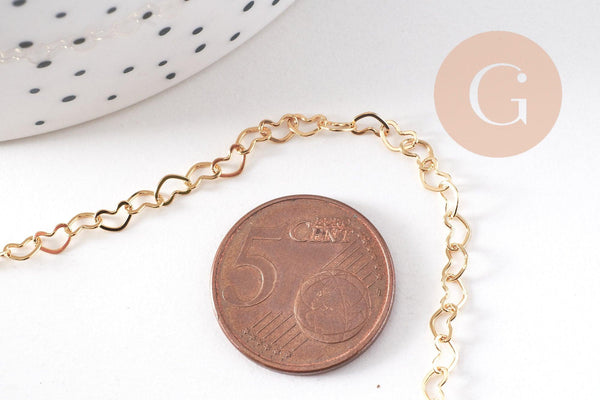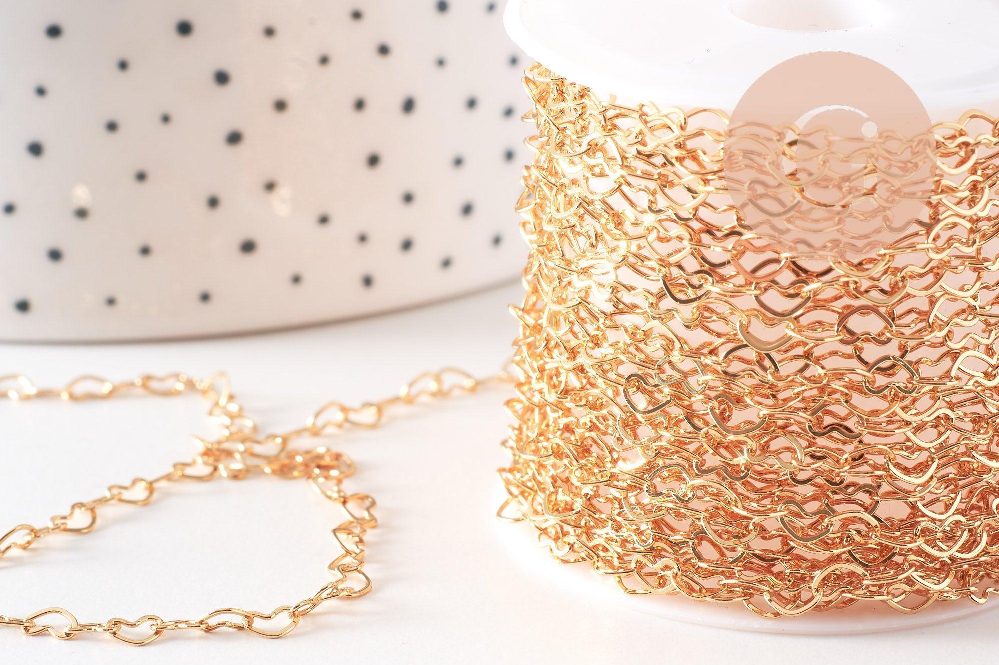 Cadena de eslabones en forma de corazón de latón bañado en oro de 18 quilates, 3 mm, x1 metro (G10519)