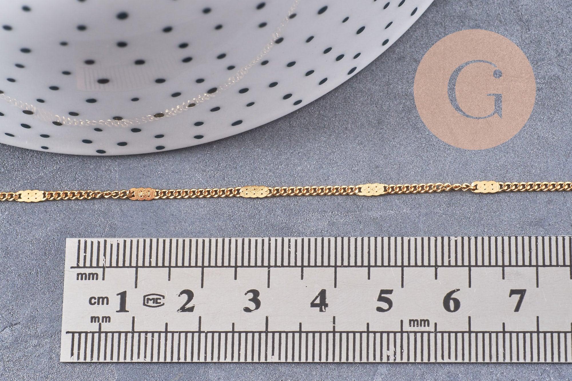 Una elegante cadena de malla plana de acero inoxidable de oro de 14 quilates que se vende por metros.