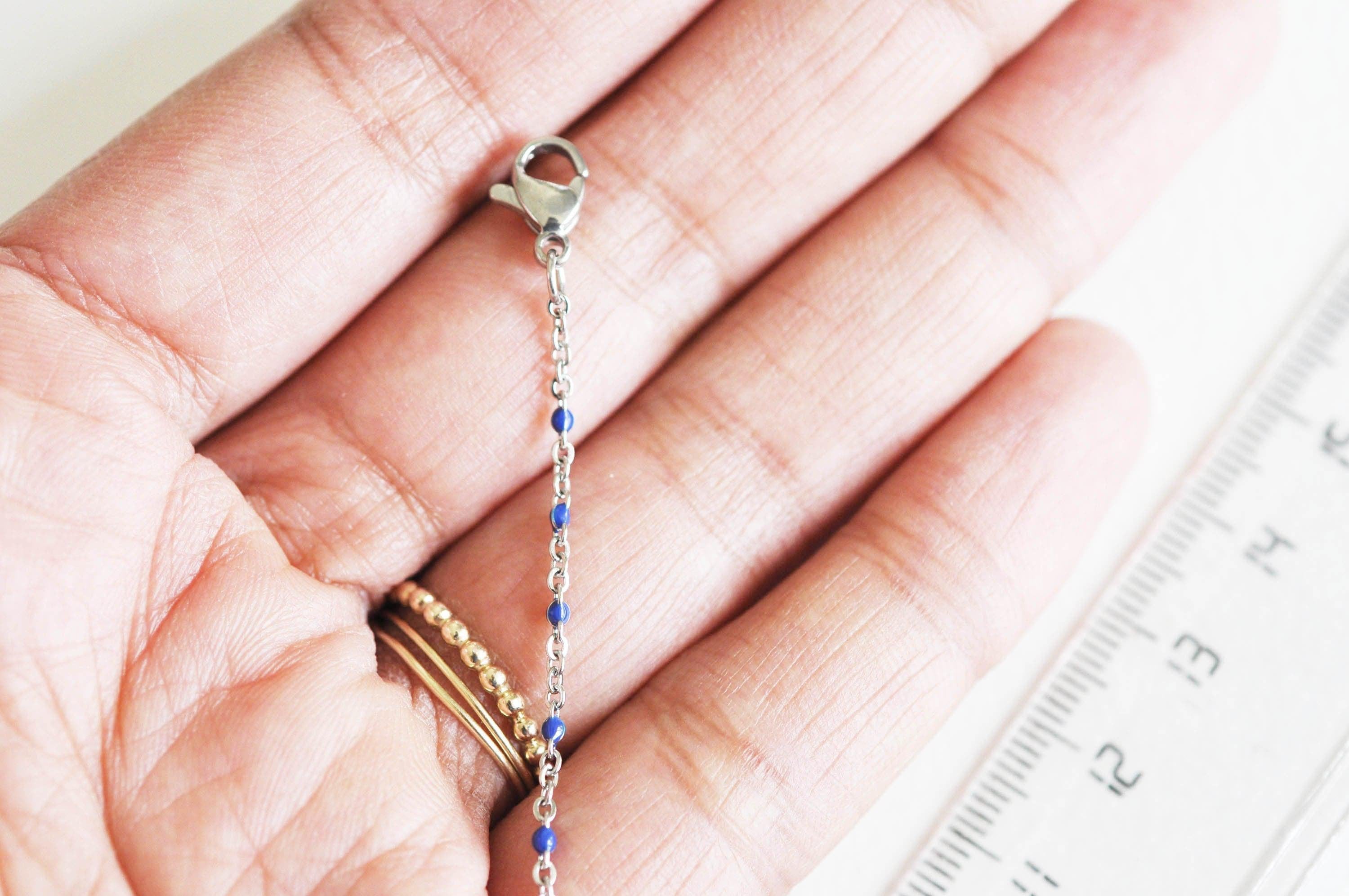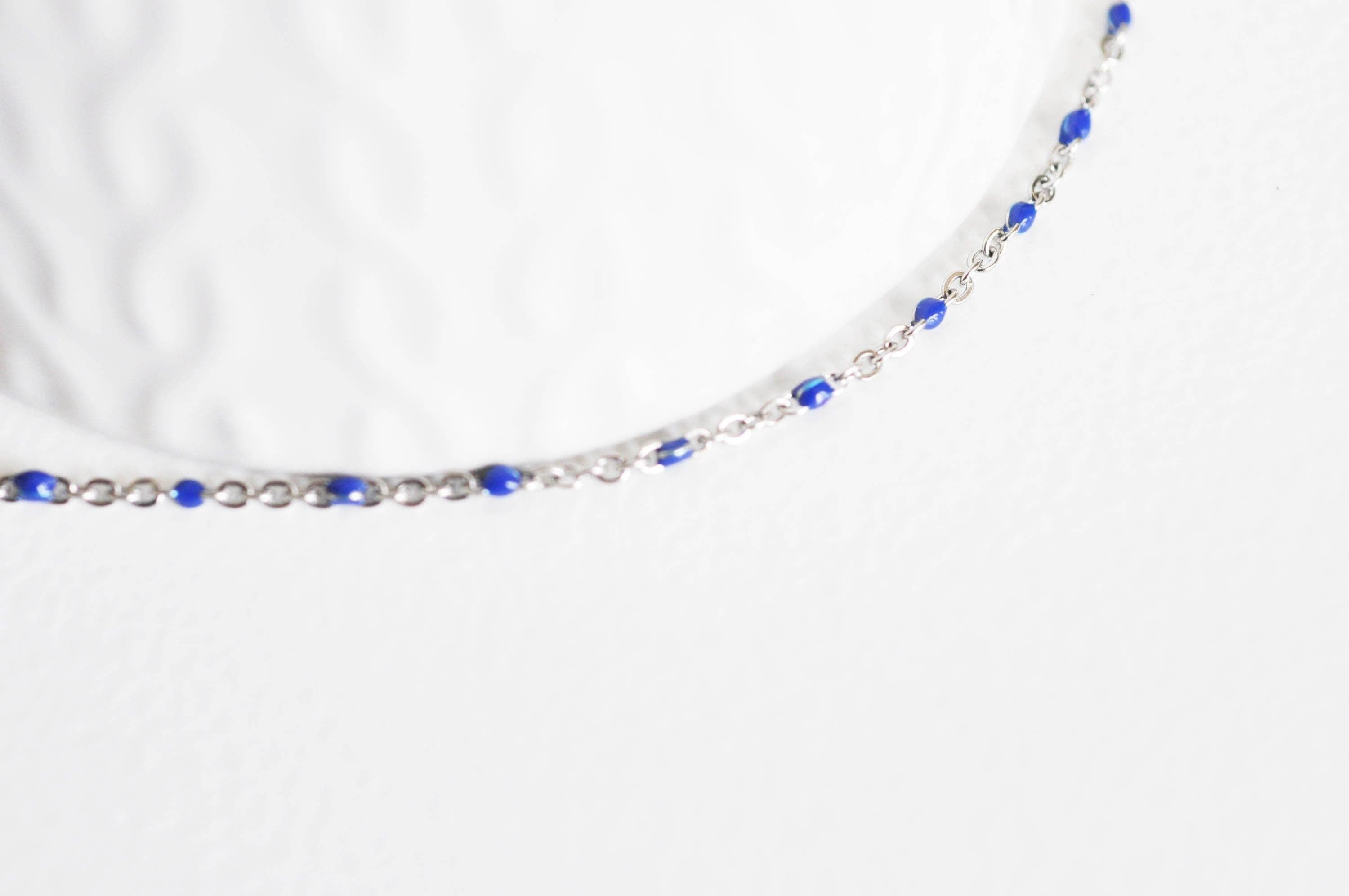 Una elegante cadena de malla de convicto con eslabones cubiertos de resina azul real.