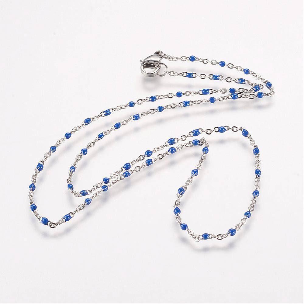 Cadena satélite completa de acero inoxidable 304 de resina azul de 2 mm/45 cm con revestimiento de platino, x1 (G1216)