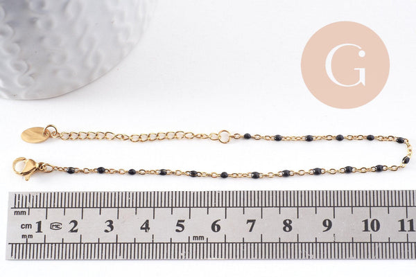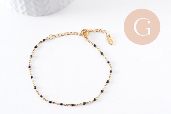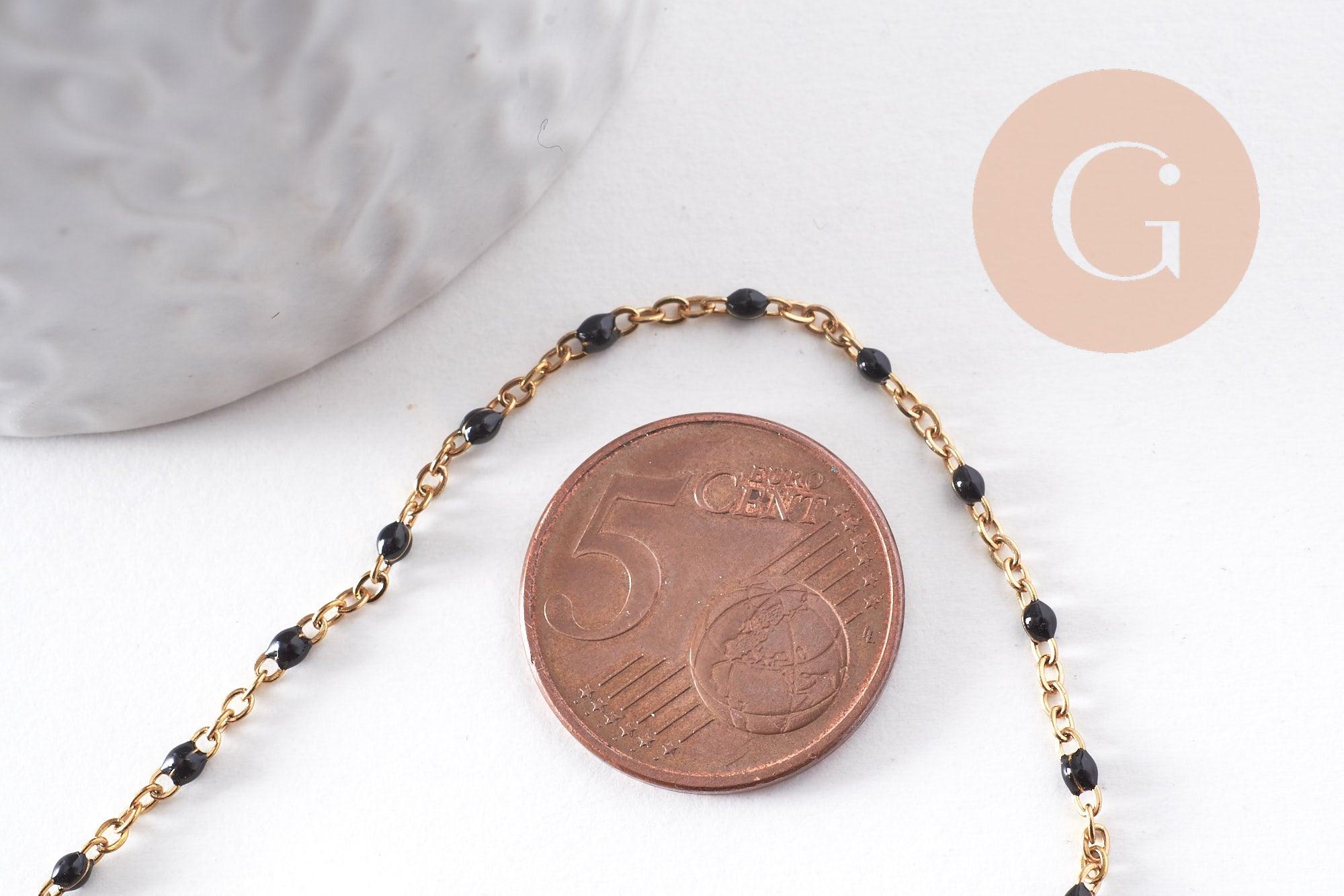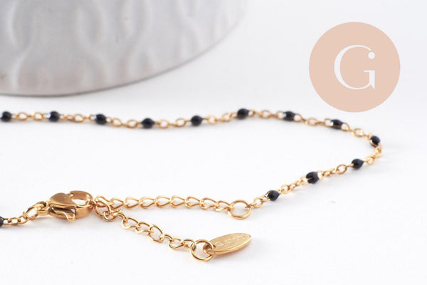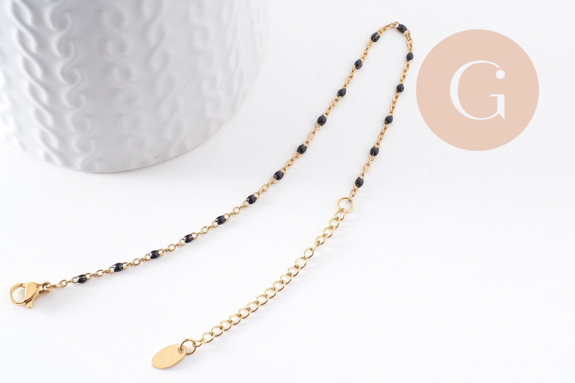 Añade un toque elegante y contemporáneo a tus creaciones con esta pulsera de acero inoxidable bañada en oro de 14k , realzada por una fina cadena de resina negra . Ya montado, está listo para usar para crear rápidamente joyas minimalistas, modernas y duraderas.