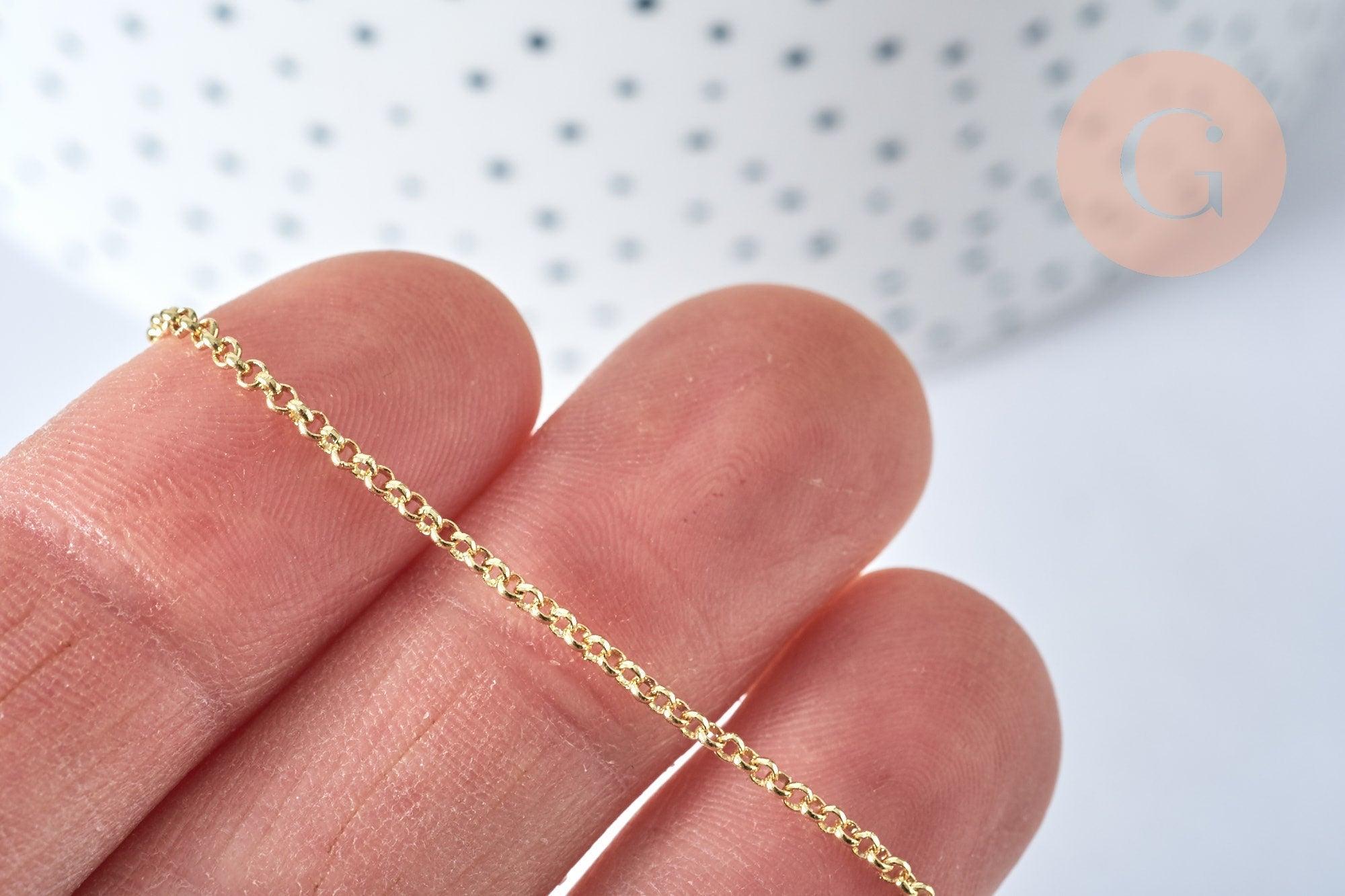 Cadena rollo fina de oro de 14K, suministro creativo, cadena de collar, cadena completa, dorado de 14k, 1,5 mm, 45cm, x1 G5800
