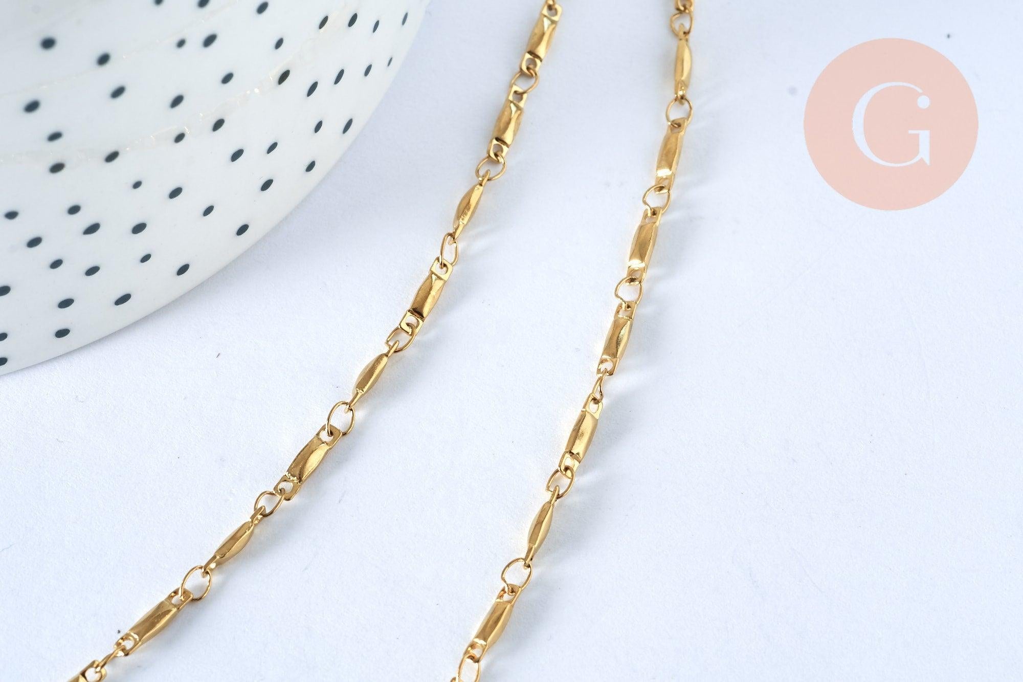 Para realizar rápidamente tus joyas, Gingerily te ofrece esta cadena de acero bañada en oro de muy buena calidad.