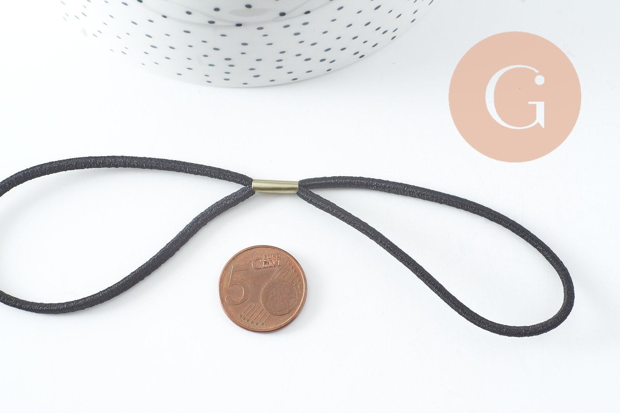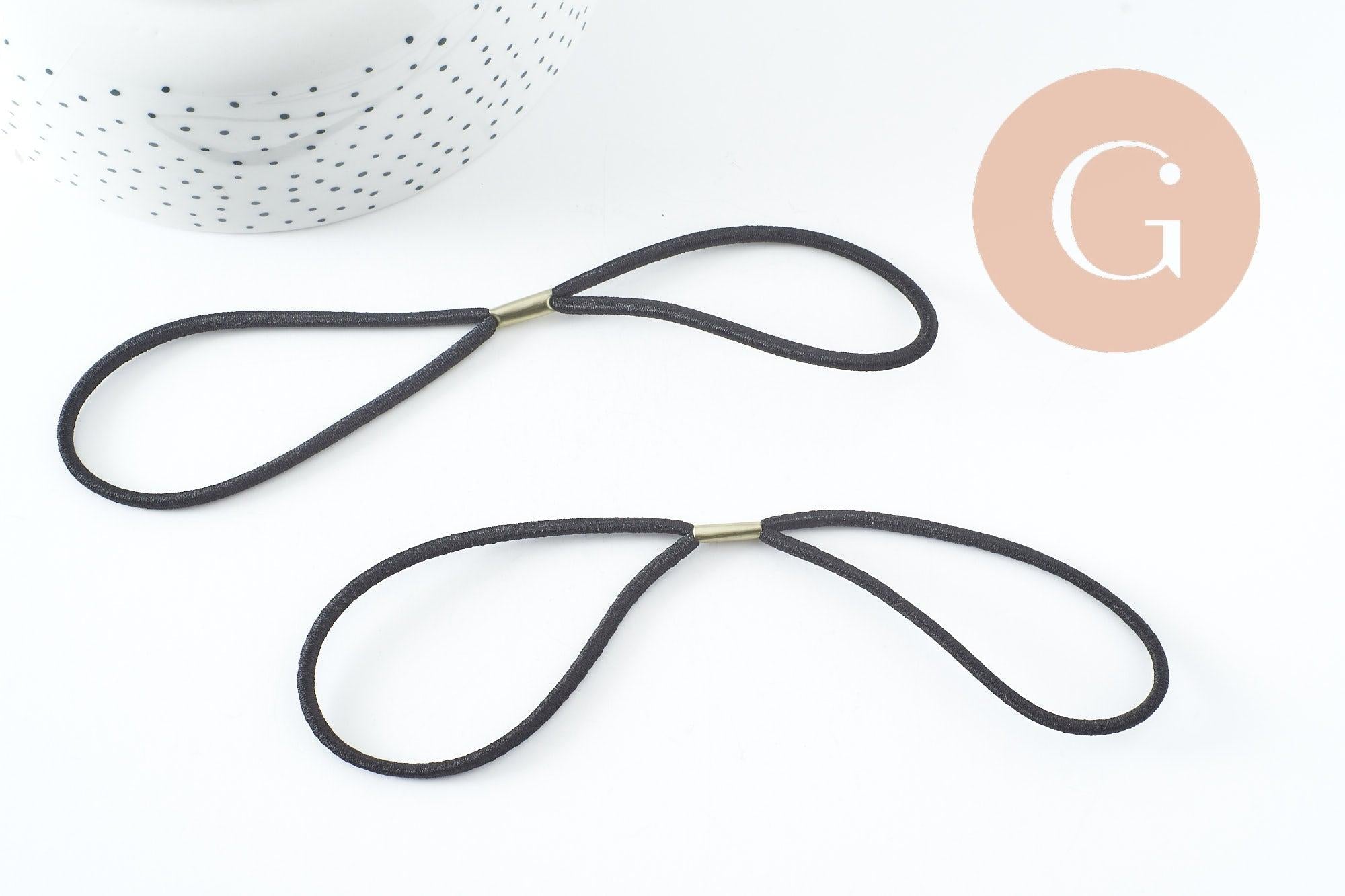 Headband cordon en élastique nylon noir 18cm, x2 (G0023)