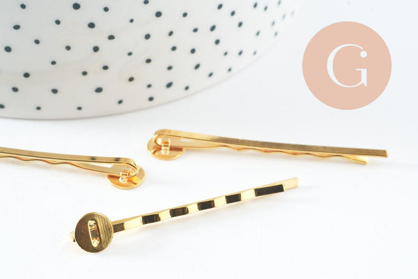 Un juego de 5 soportes para pasadores de metal dorado , que se pueden adoptar inmediatamente para realizar pasadores personalizados, con bonitos cabujones...