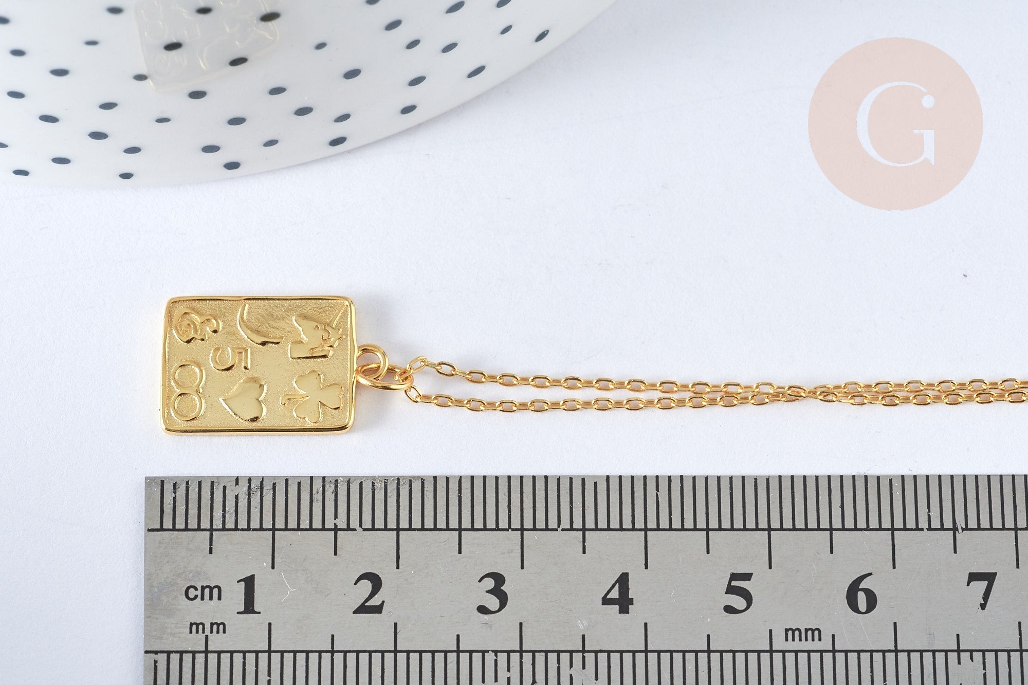 Collar rectangular con símbolo de la suerte, plata 925, baño de oro de 24 quilates - 45 cm, ideal para regalo de cumpleaños, x1 (G7258)