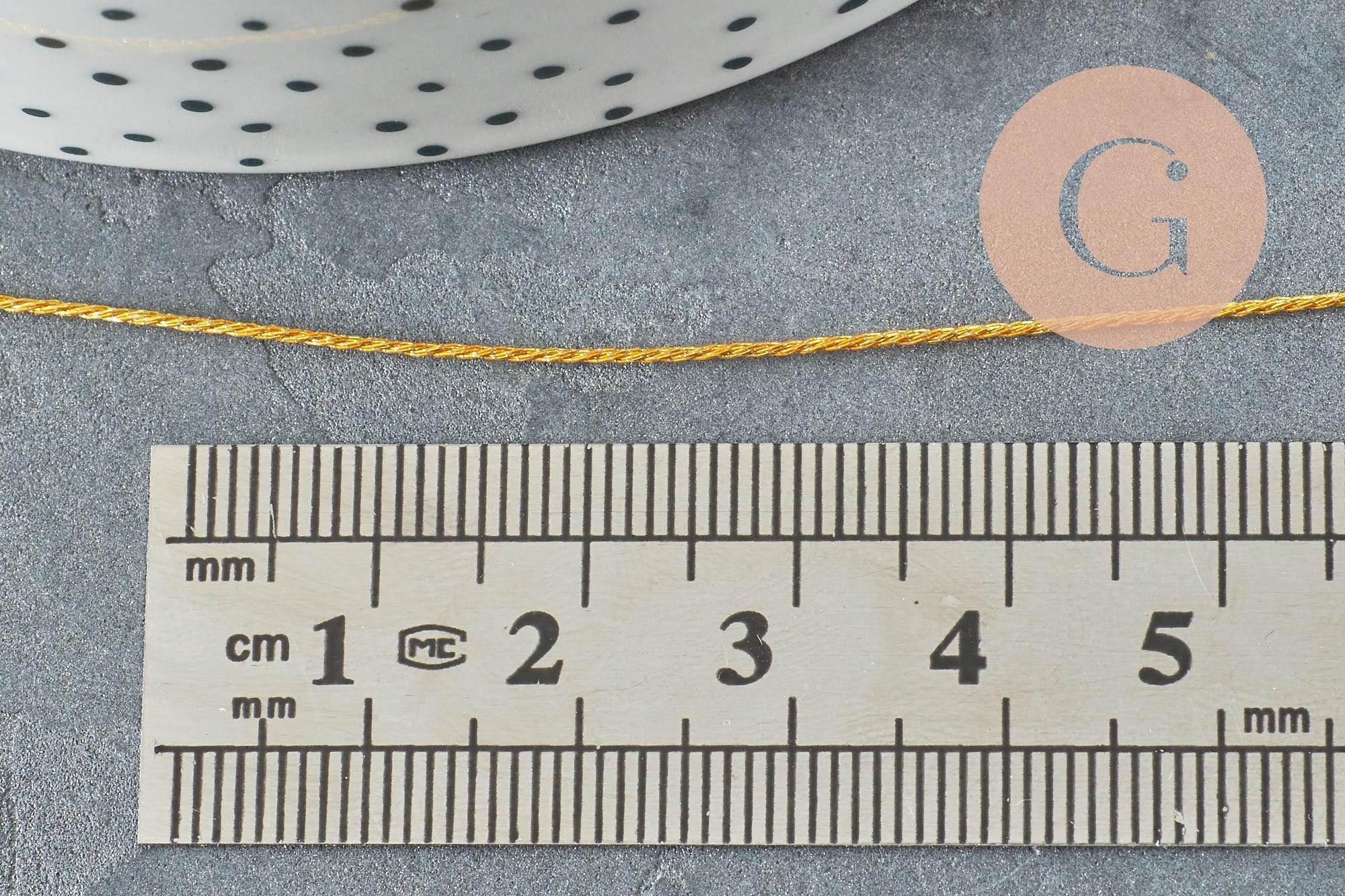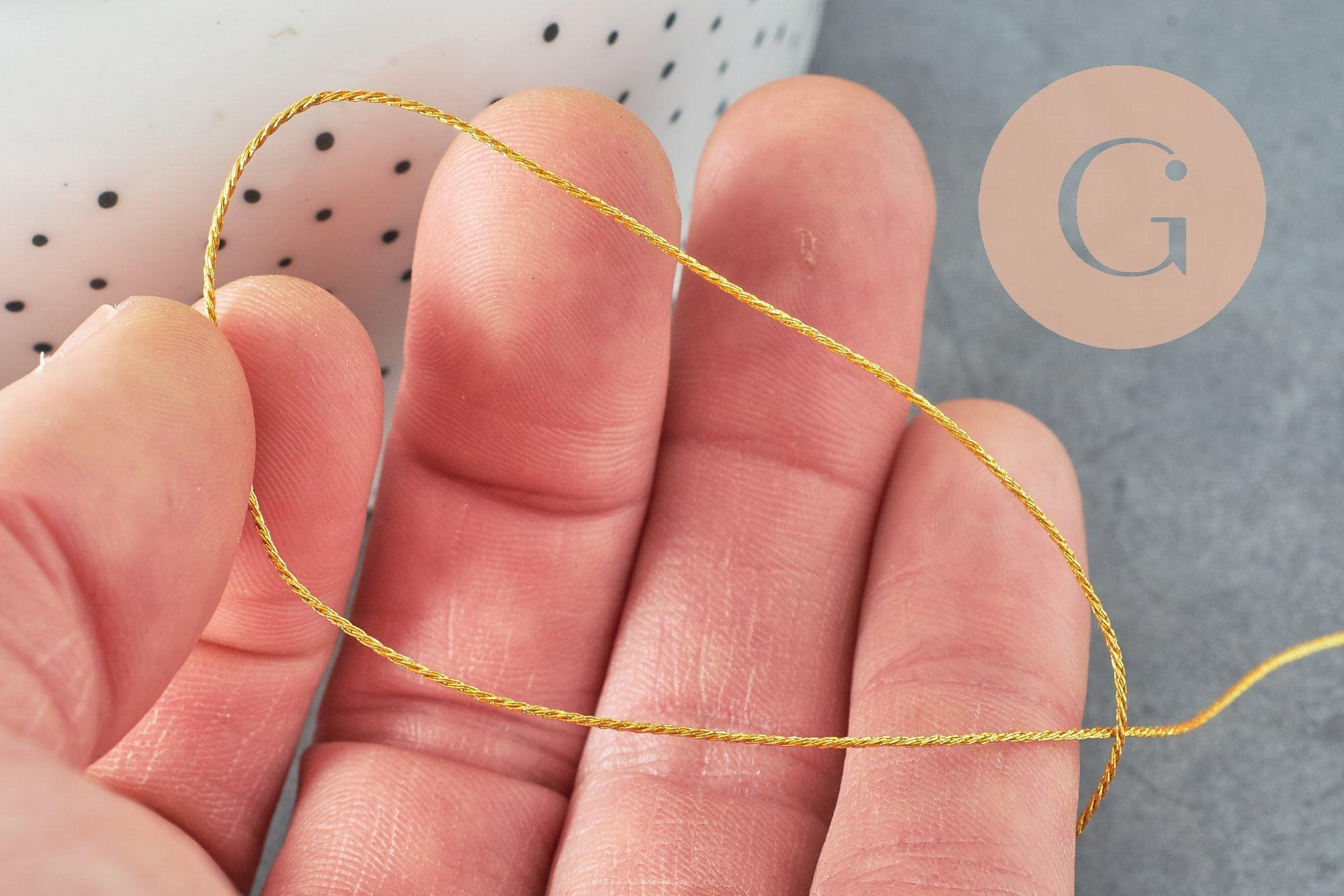 Añade un toque de luz y sofisticación a tus creaciones con este cordón de nailon dorado . Su delicado brillo y textura flexible lo convierten en un elemento imprescindible para la elaboración de joyas, accesorios o decoraciones DIY.