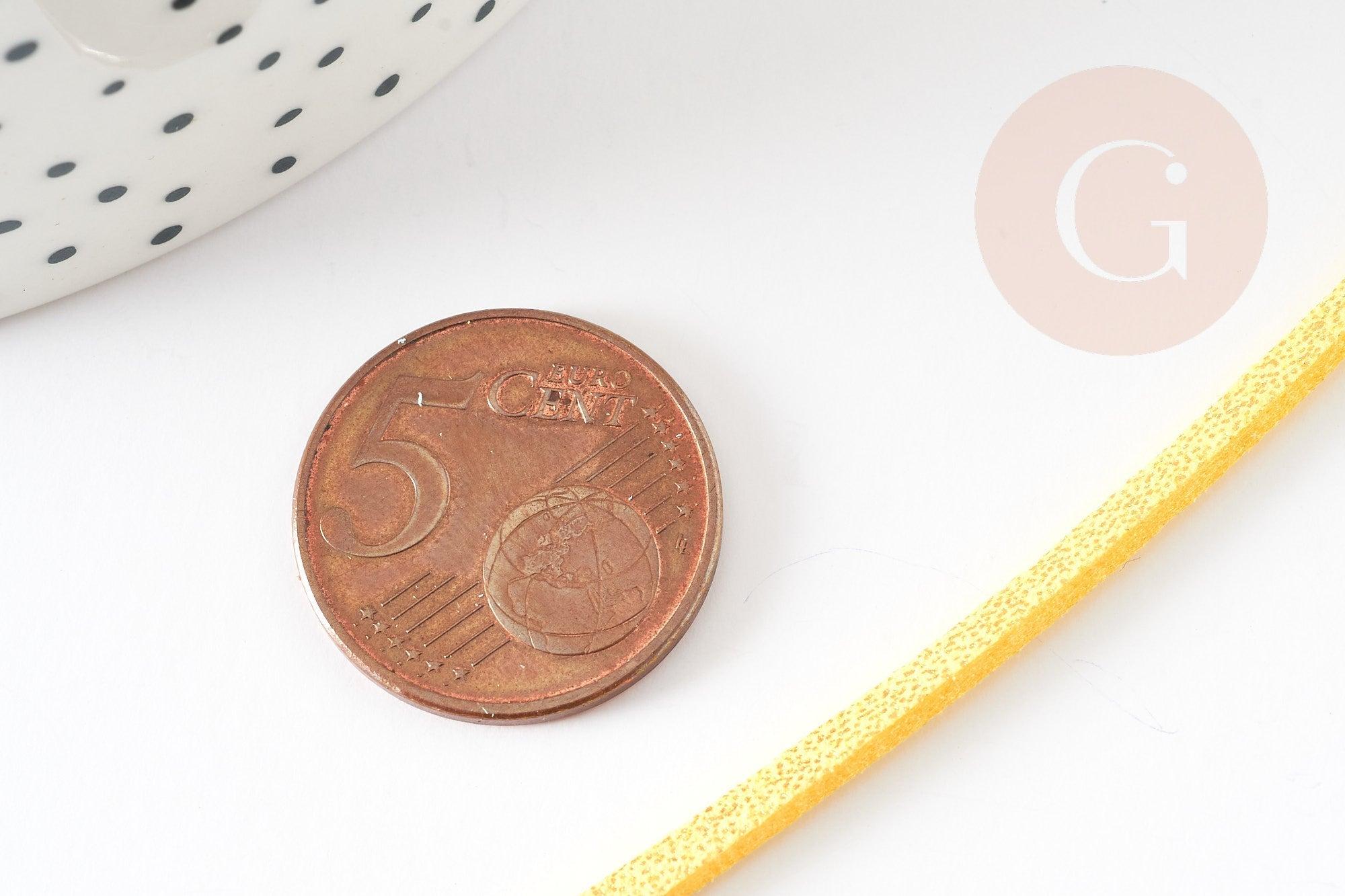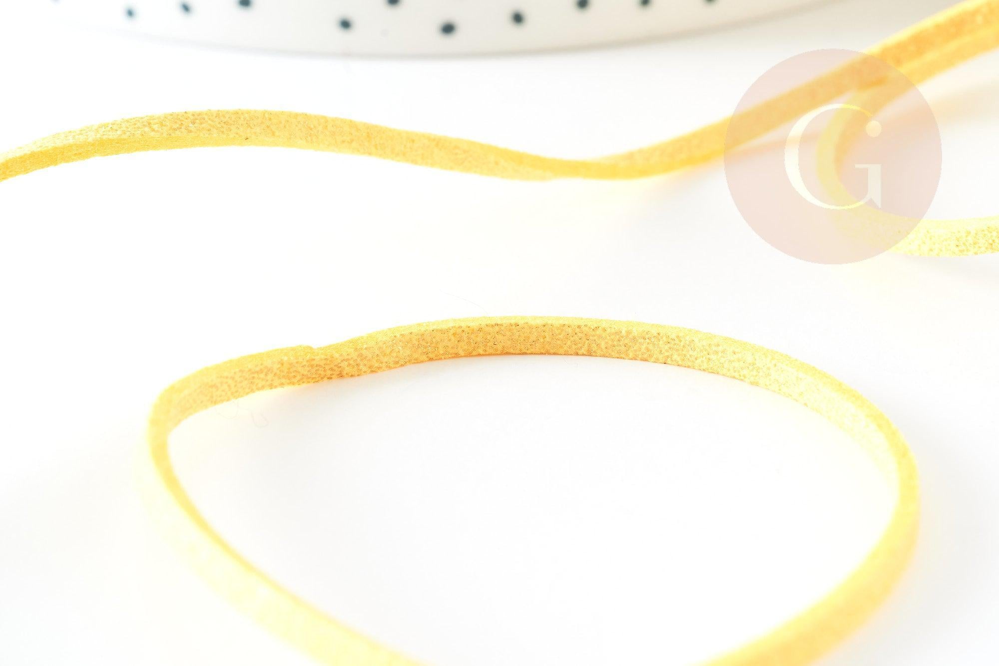 Cordon suédé jaune à paillettes imitation cuir 3-4mm,x1 mètre (G8242)