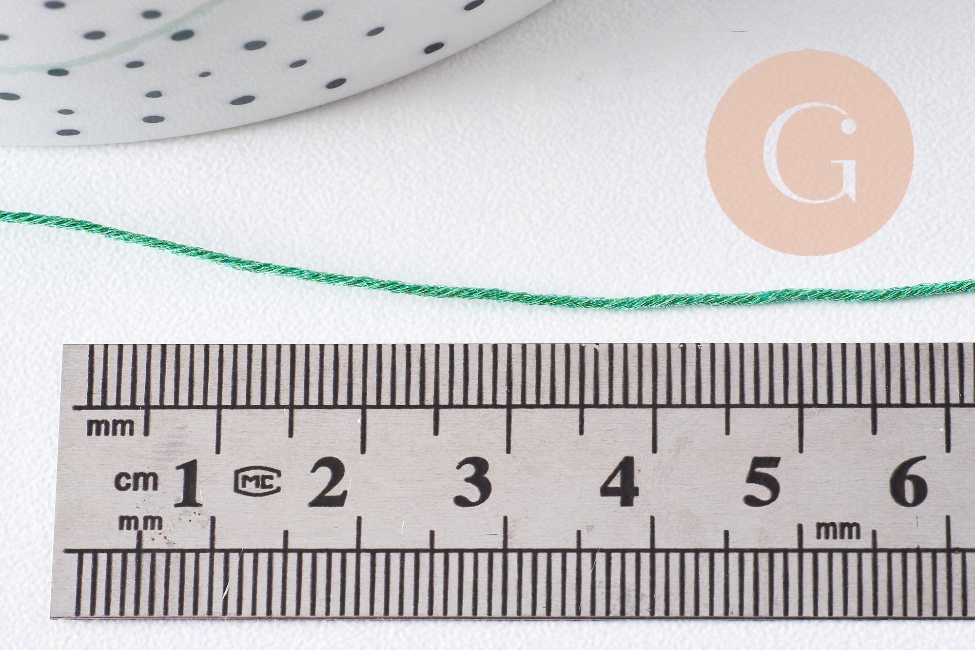 Este cordón de poliéster verde metalizado es imprescindible para tus creaciones de joyería DIY. Combina brillo, flexibilidad y resistencia, para dar un toque de brillo a tus pulseras, collares o tobilleras.