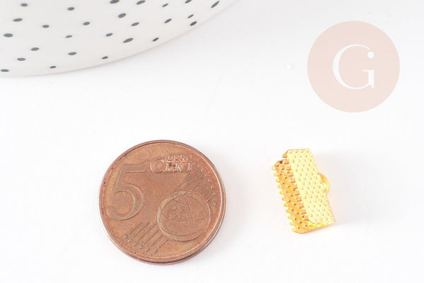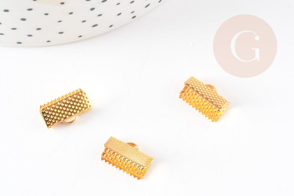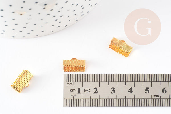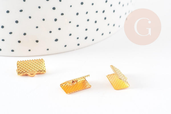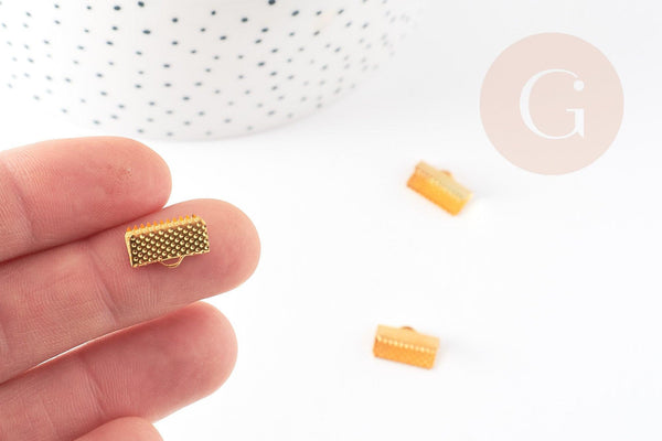 Para sus pulseras, collares y otras joyas que requieran el uso de cintas, aquí tiene un juego de 10 puntas de metal dorado.