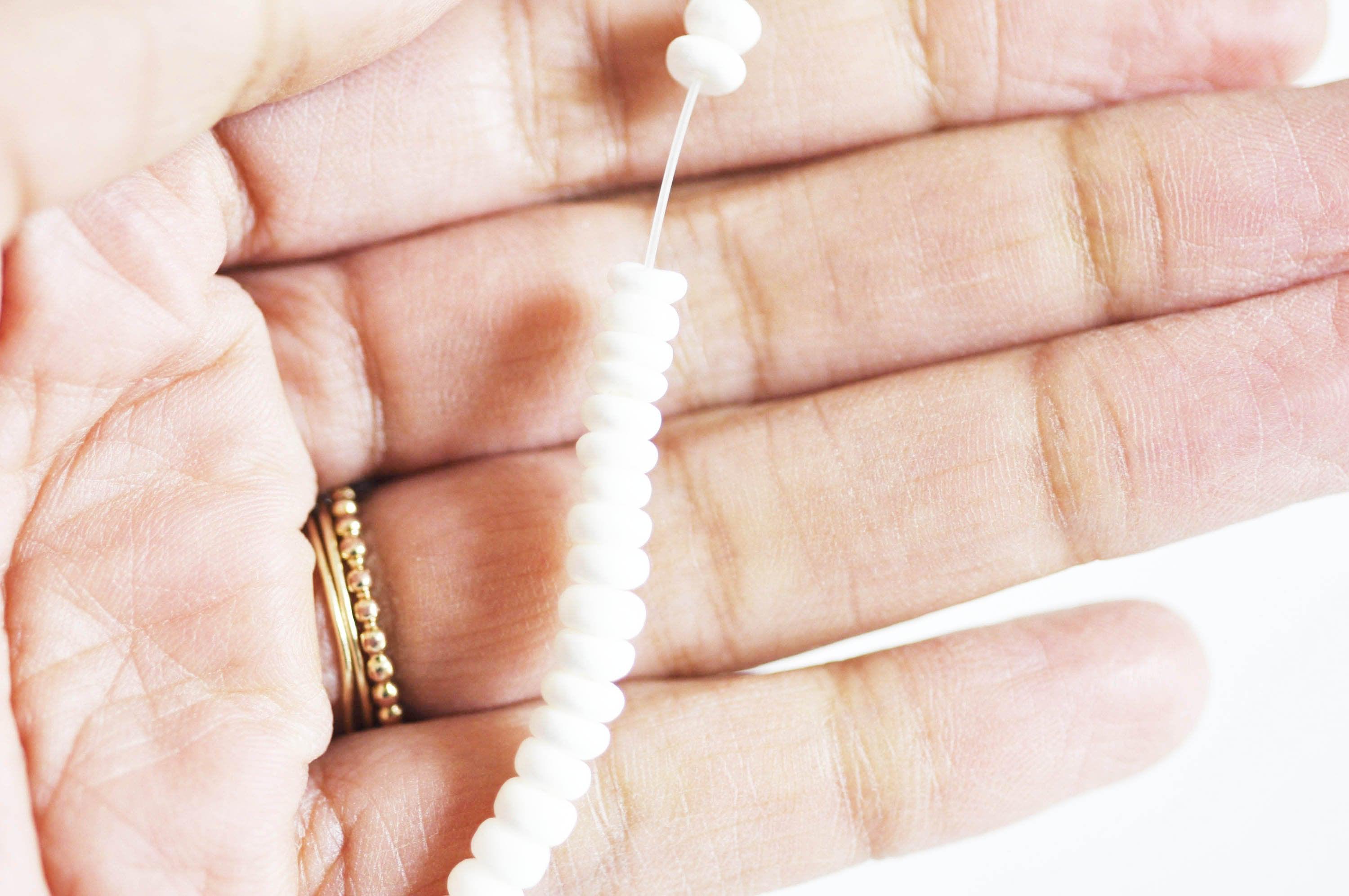 Perlas naturales de concha blanca redondas de aproximadamente 170 perlas. 58 cm Cuentas redondas planas de concha blanca natural. La hebra contiene aproximadamente 170 cuentas. Diámetro de la perla: 5-6 mm Grosor de la perla: 1-3 mm Orificio de la...
