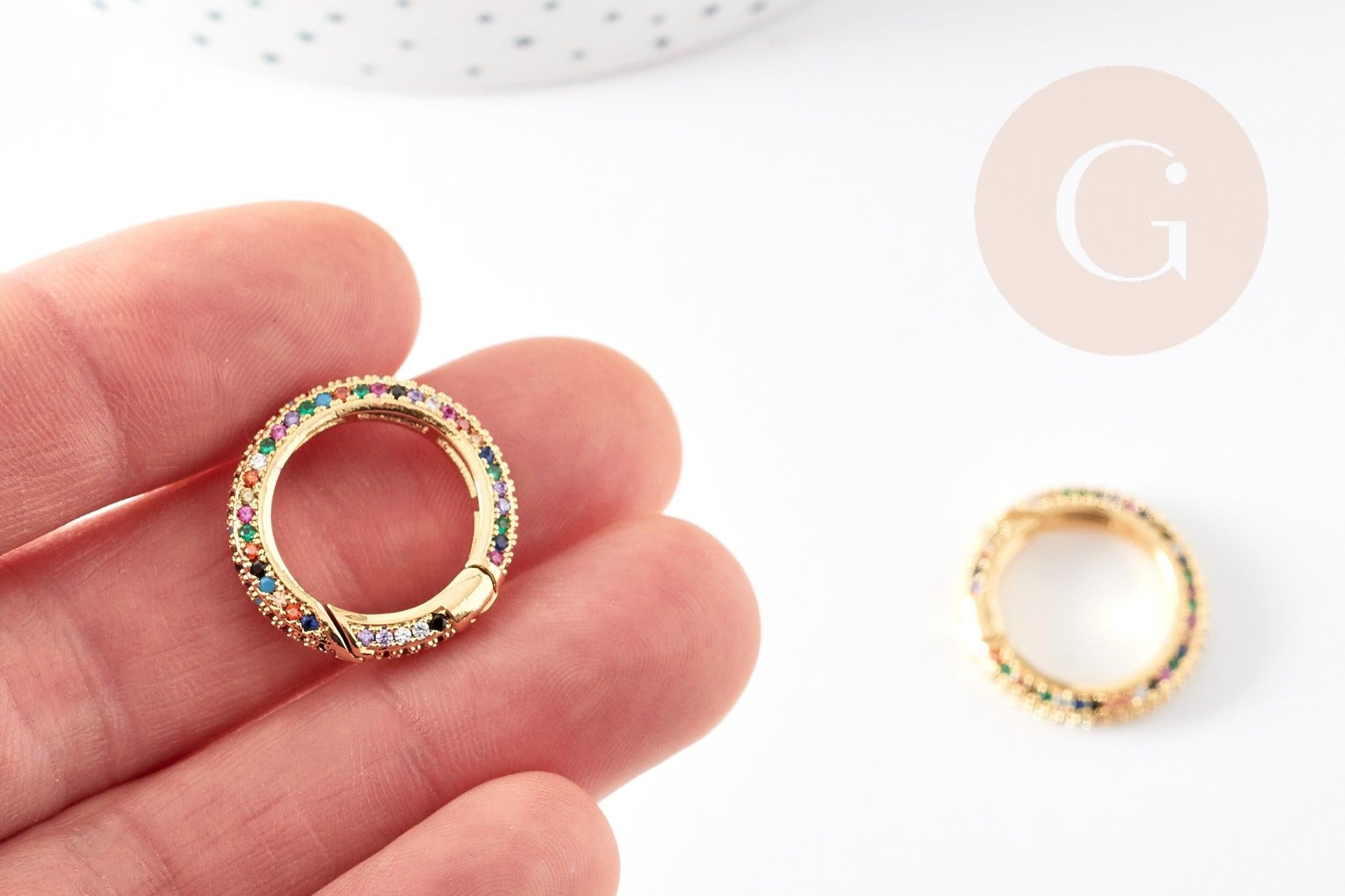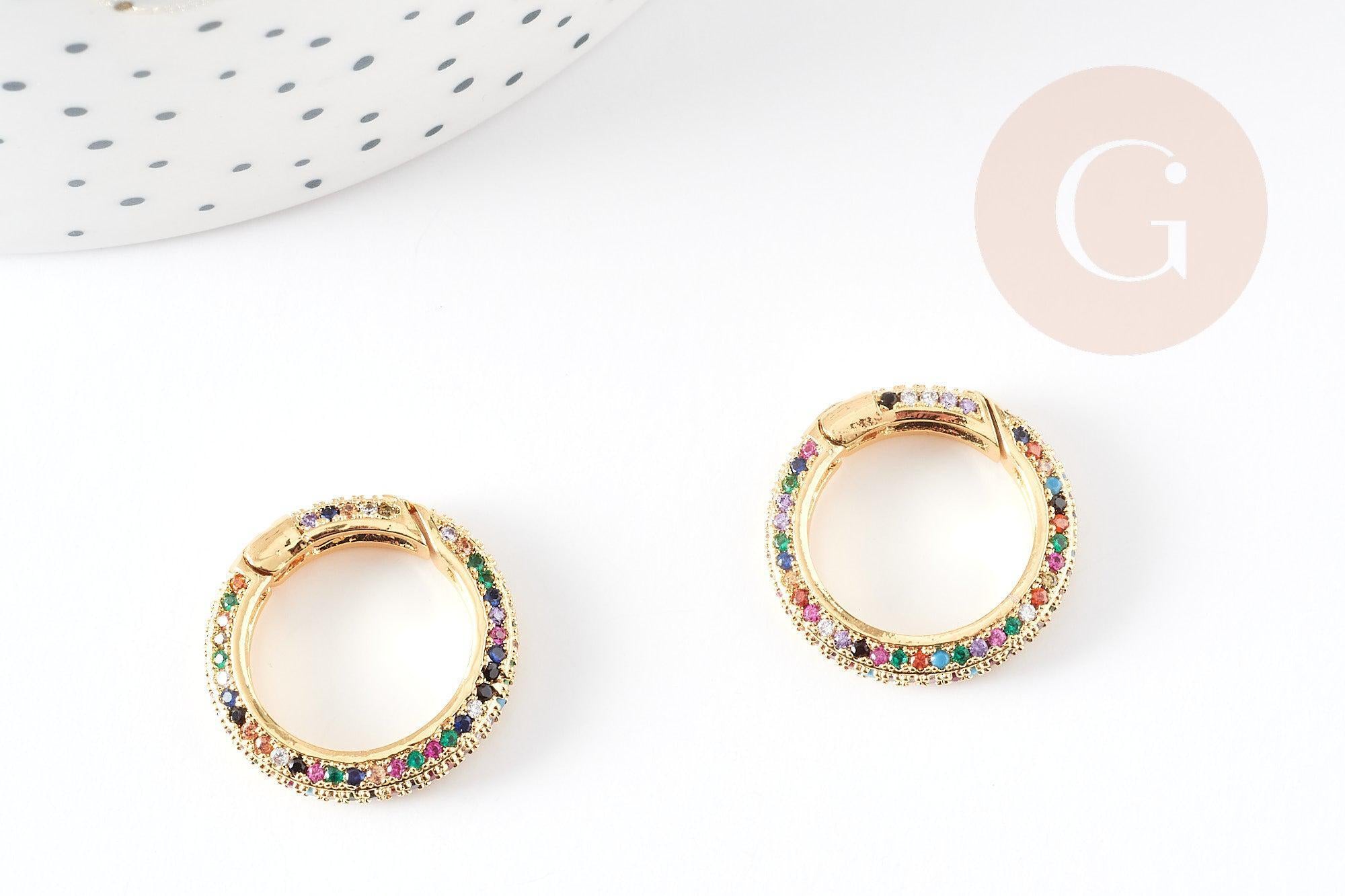 Un cierre de solapa en forma de círculo de latón bañado en oro y circonitas multicolores para tus collares, pulseras y collares: sólido y de calidad, resaltará tus joyas minimalistas.